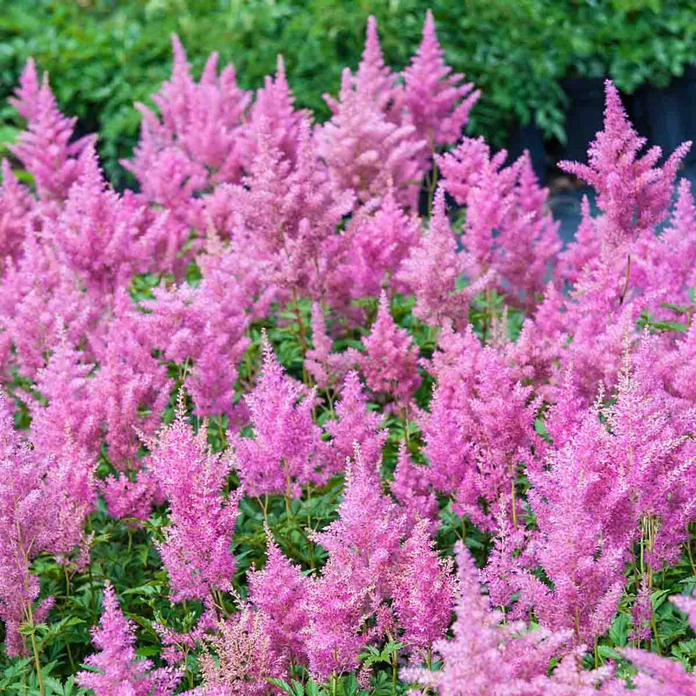 Plumes of pink brighten shade and woodland gardens in early to midsummer. The flowers also are stylish in cut-flower displays. Astilbe Europa's feathery foliage adds texture and movement throughout the growing season. A favorite shade perennial, astilbe grows 24-36" tall and performs best in regular to moist soil and in partial to full shade. Astilble grows well with other shade plants such as hostas and ferns and has few disease and insect problems. Astilbe Europa is also suitable for container gardening. Deer tend to avoid.