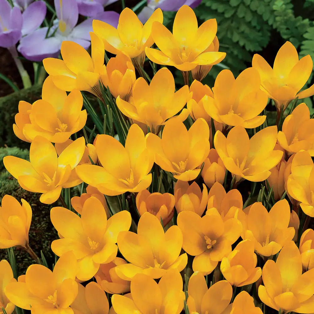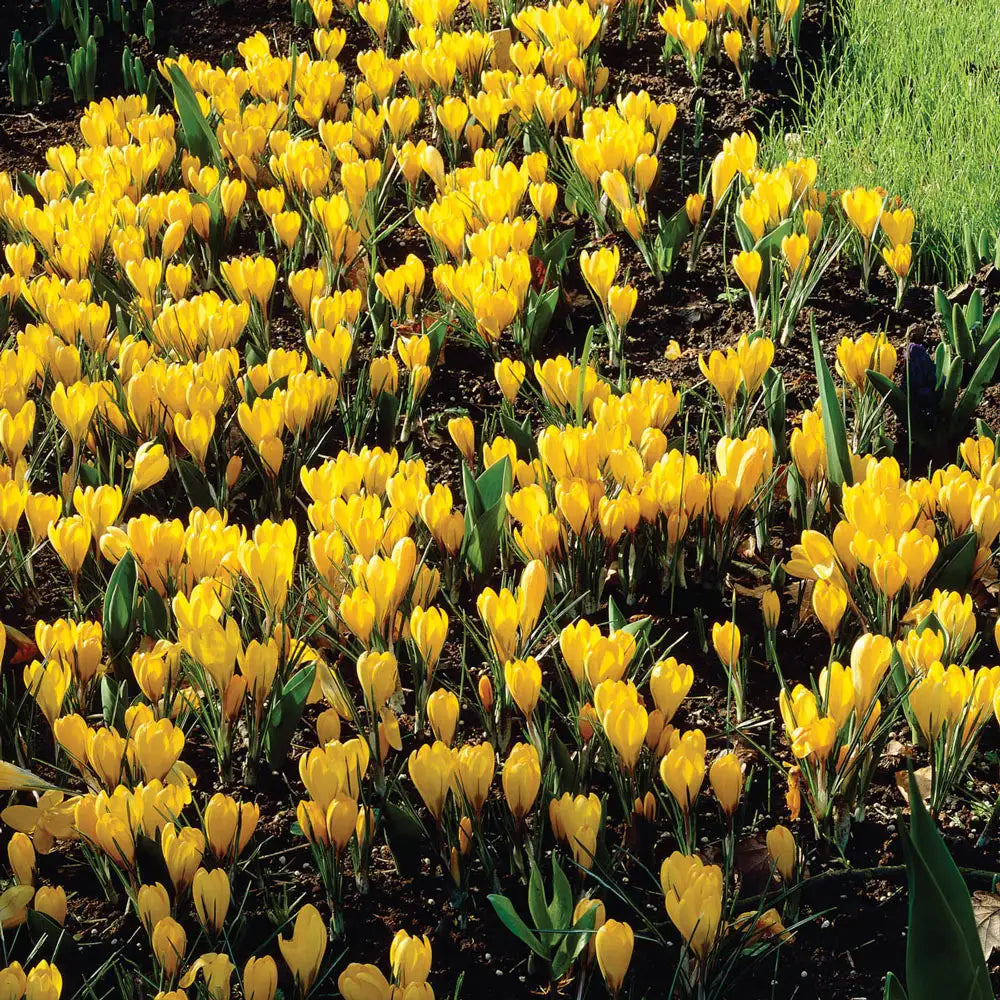 Brilliant yellow flowers add plenty of cheer to containers, naturalized areas and gardens when they open in early spring. Growing 3-6" tall, Giant Crocus Golden Yellow (C. vernus) is a charming sight when planted in groups of a dozen or more. The cheery color also complements blue, white and purple giant crocus. For an impressive look, plant giant crocus bulbs in groups of hundreds and thousands for naturalizing in the grass, woodlands, slopes and under trees. Crocus bulbs multiply rapidly, so you'll enjoy more blooms every year.