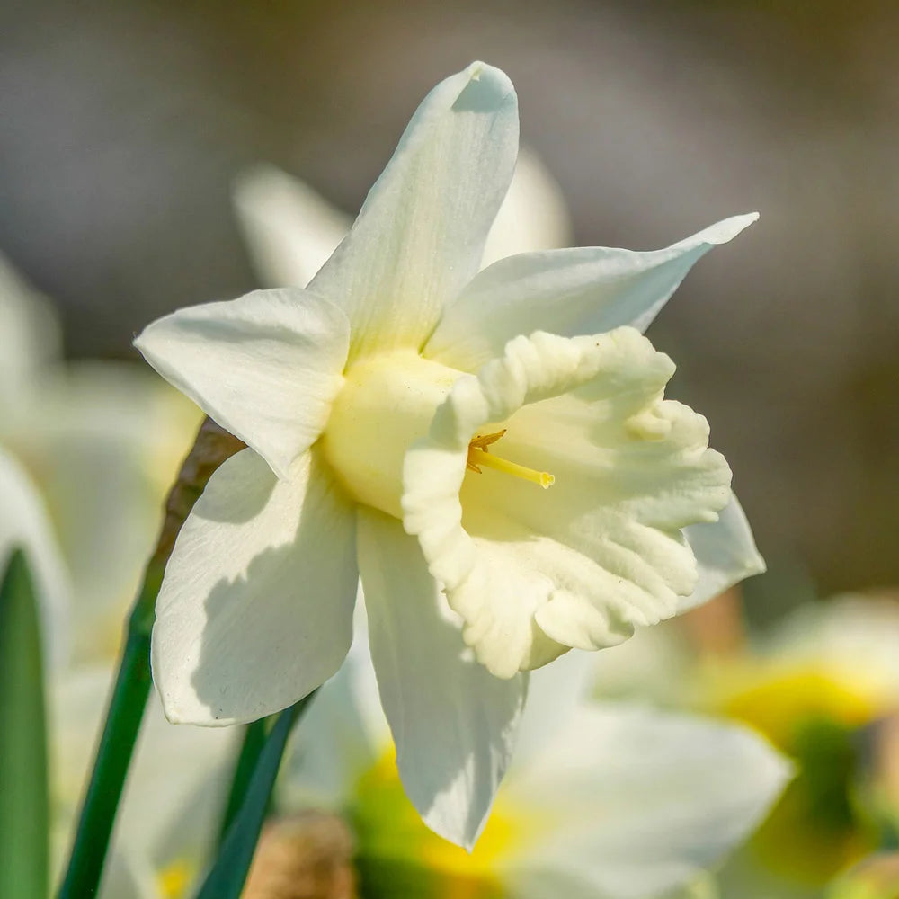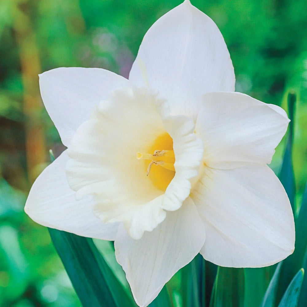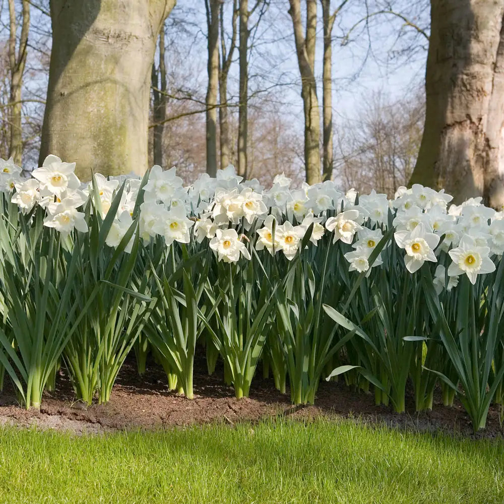 As impressive as its namesake, Trumpet Daffodil Mount Hood features huge, 5" flowers that emerge creamy yellow (both perianth and trumpet), but rapidly mature to ivory white. Perhaps the best-known group of narcissus, trumpet daffodils are treasured for their large flowers with trumpets as long as or longer than the flower petals. Growing 14" tall, Mount Hood is ideal for planting in borders, containers and flower beds. It's impressive as a cut flower too. Multiplying freely, these terrific naturalizers have a long blooming season. Easy to grow and deer resistant, daffodil bulbs perform best when planted in well-drained soil and in full sun to partial shade.