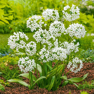 This gorgeous 1823 heirloom allium has long been prized for its 2" ball-shaped umbels of clear white florets with pale green eyes. No your customers can enjoy this long-lived and long-loved allium in their own gardens or landscapes. Allium cowanii is a robust variety that easily resists the advances of deer, rodents and rabbits, all while being a friend to local pollinators and butterflies. Long lasting and versatile, it looks great in borders, cutting beds and rock gardens. Cannot be shipped to ID, WA.