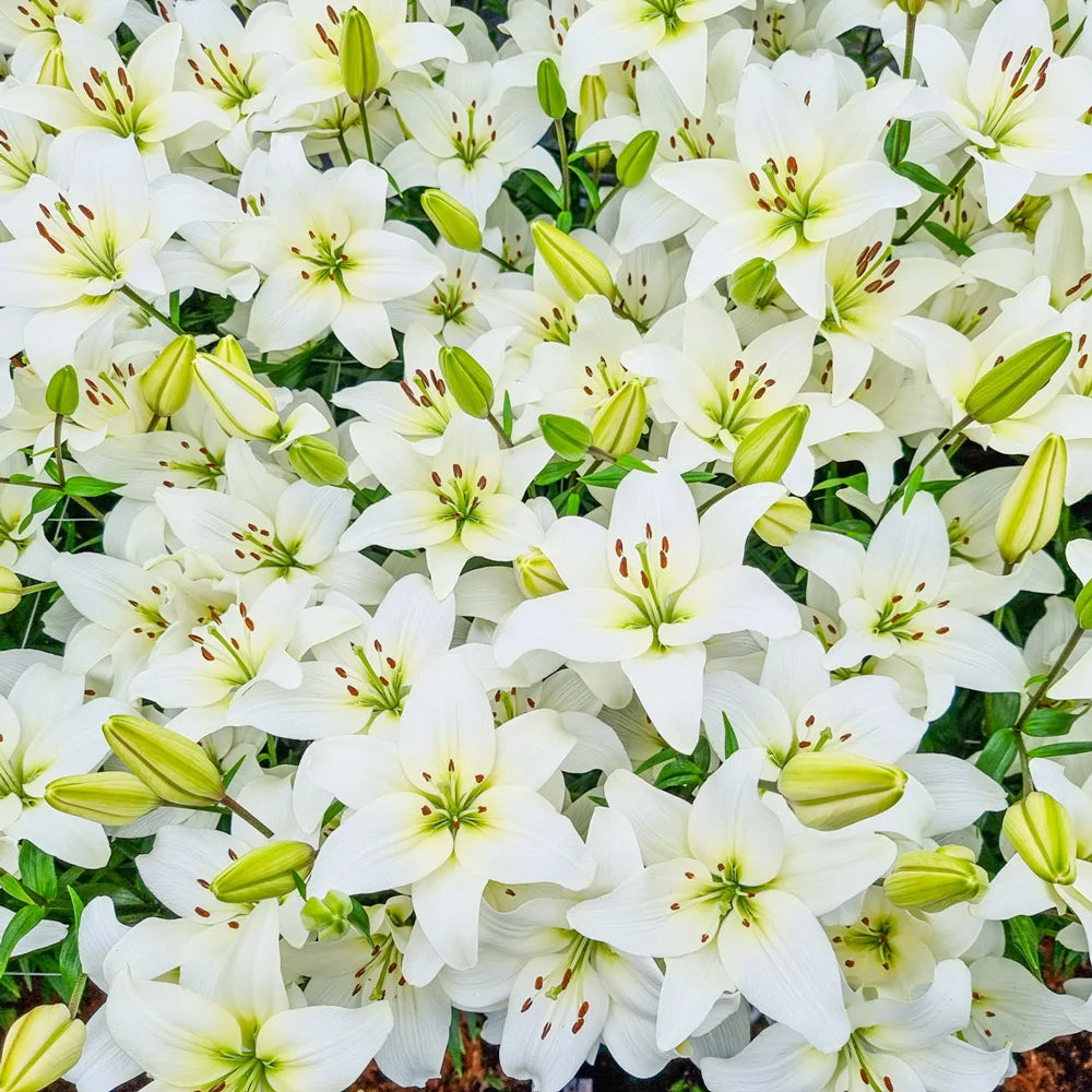 True to its dazzling name, Bright Diamond is a gorgeous white Asiatic type with style and elegance to spare. Lush, 5-6" lilies appear in abundance from early to midsummer to give the landscape or garden that touch of glamour it may have been missing. Each sturdy, 45" stem produces up to eight gorgeous blooms, making it a go-to for cutting or pollinator gardens. The lovely sight of colorful butterflies alight on the pure white flowers is something your clients or customers won't soon forget. A perennializing powerhouse, Bright Diamond returns yearly with even more graceful blooms than the years before. Plant in groups for an even bigger show.