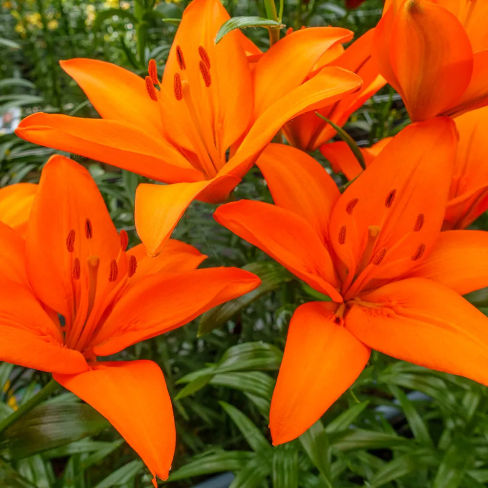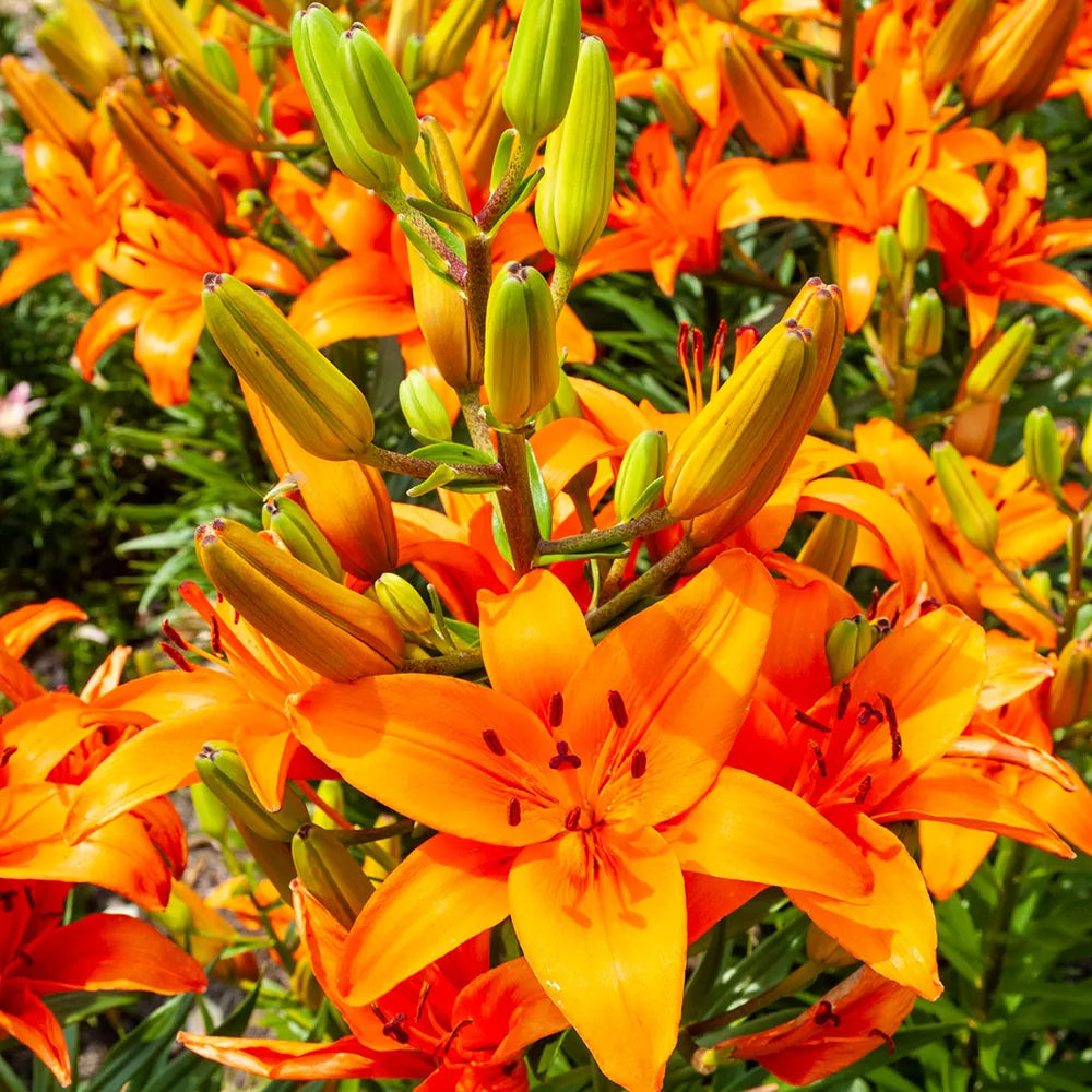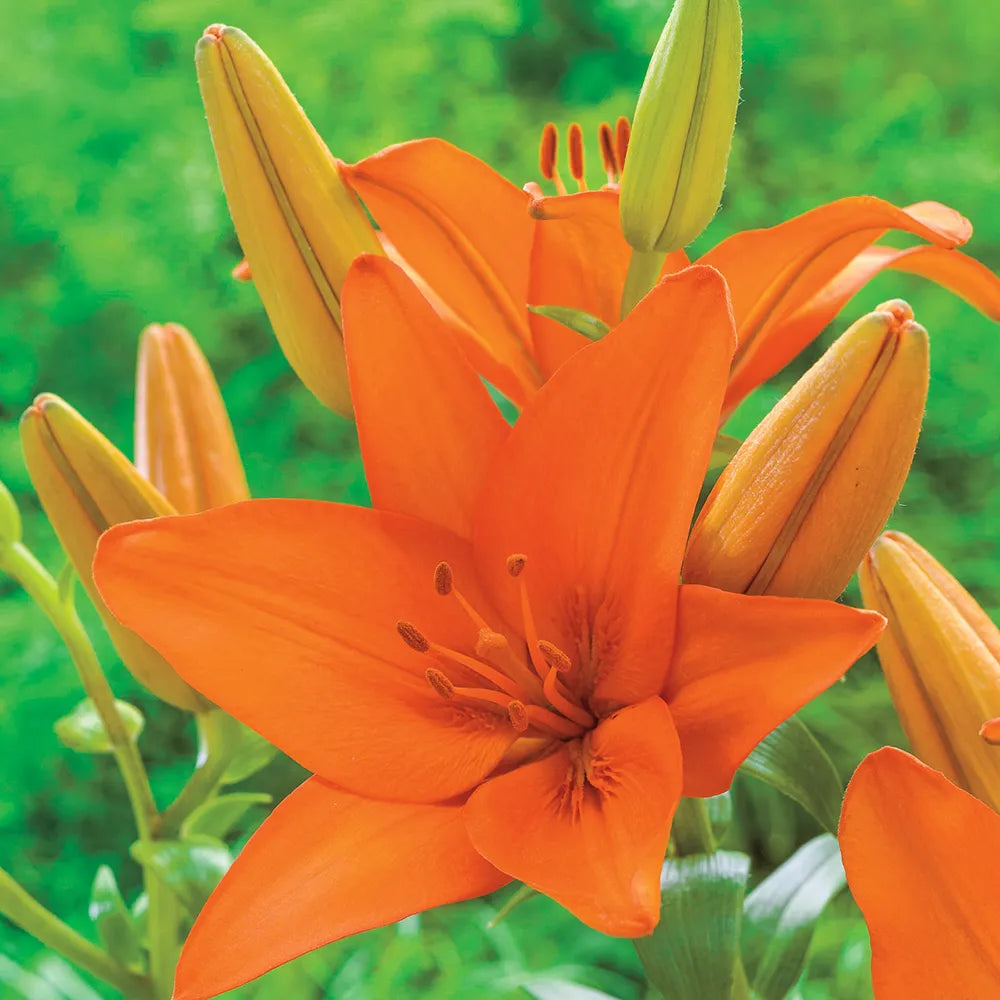 Widely regarded as the best orange Asiatic lily on the market, Orange Summer produces a hardy, 32" tall plant that bears multiple blooms per stem. From early to midsummer, an abundance of 5-5½" lilies in a radiant shade of orange cover the plant, luring passing pollinators and bewitching butterflies to come closer. As a border addition, its warm color creates a sizzling display. In a feature planting, Orange Summer is a showstopper. A great choice for cutting, too.
