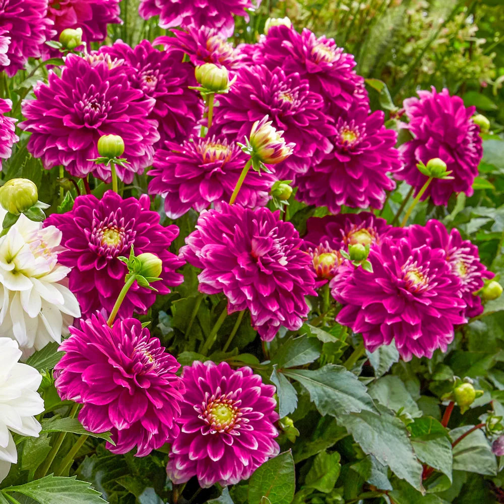Dahlia lovers with limited space will love Go Go Purple Dahlia. We've dubbed this compact wonder the perfect patio dahlia because it grows just 14-20" tall, but produces large, showy flowers that reach 4-6" across. The fully double, reddish-purple flowers are sure to add wonderful color and a festive feel to the garden. This dahlia's compact size makes it ideal for planting in sunny front borders and in patio containers. Go Go Purple Dahlia produces plenty of showy flowers for cut-flower displays too. The plants bloom continuously from midsummer to frost and require no staking. Deer tend to avoid.