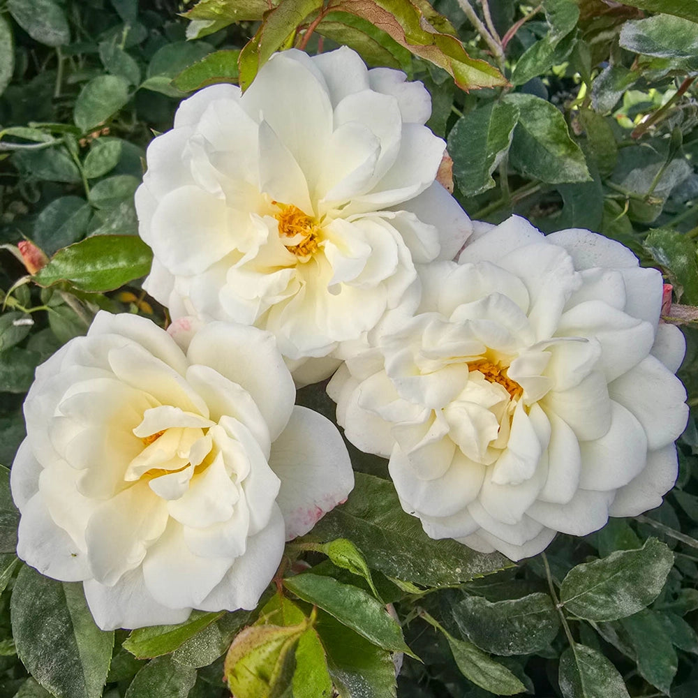 Iceberg Shrub Rose is recognized the world over as the best in white landscape roses. And now a climbing sport is available, and sure to become a favorite among gardeners and landscapers. Bright white, prolific blooms appear on vigorous plants from late spring to fall. Iceberg's light, sweet scent is another inducement to visit the garden over and over again. Train it on an arbor, trellis or garden gate to add charm and curb appeal. Snip a few of the fully double blooms for indoor enjoyment. Clusters of roses grow on old wood.