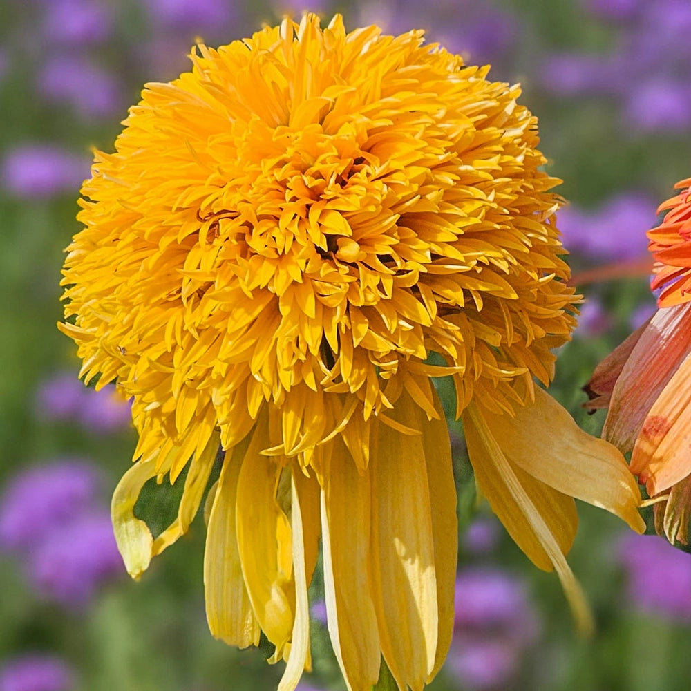 Introducing a new coneflower from Dutch breeder, Marco van Noort. Cheerleader Yellow adds a one-two punch of warm yellow color and an eye-catching flower form. Extra-large blooms grow 3.5-4" wide and boast large, warm yellow cones surrounded by single petals in a similar shade. The bright hue acts as a beacon to nearby pollinators, while the amazing blooms enchant neighbors and passersby. Drought-tolerant plants are well branched, bearing loads of gorgeous coneflowers. Size: #1 Root.