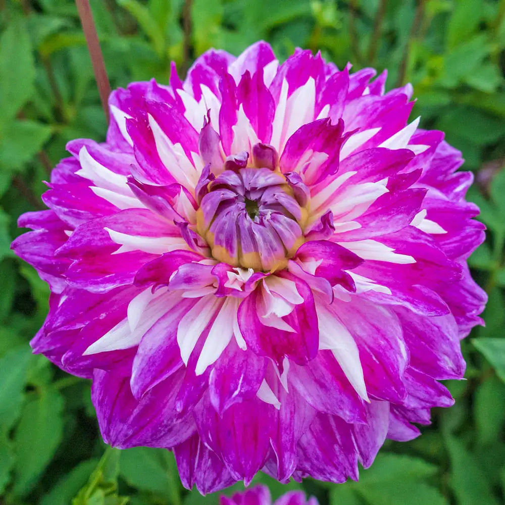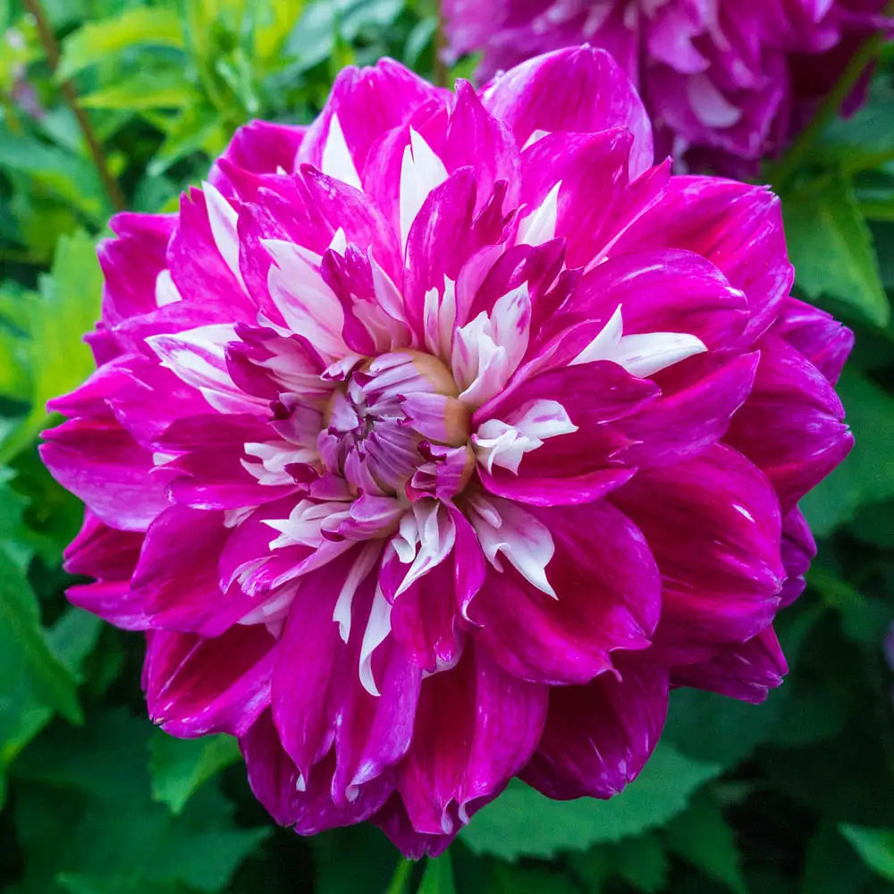 Featuring a different look, this Colorful Decorative Dahlia has quilled petals that are a blend of rose-purple on white. Optic Illusion forms a nice bushy plant with lots of 5" fully double flowers—blooming for months on end! Plant in full sun and well-drained soil. Showy flowers add interest to borders and bouquets. Remove spent flower heads to encourage more blooms and maintain a neat appearance. Easy to grow, but not hardy, take care to lift tubers in zones 3-7 in the fall and store in a dry, frost-free location. Deer tend to avoid. No. 1 clumps.