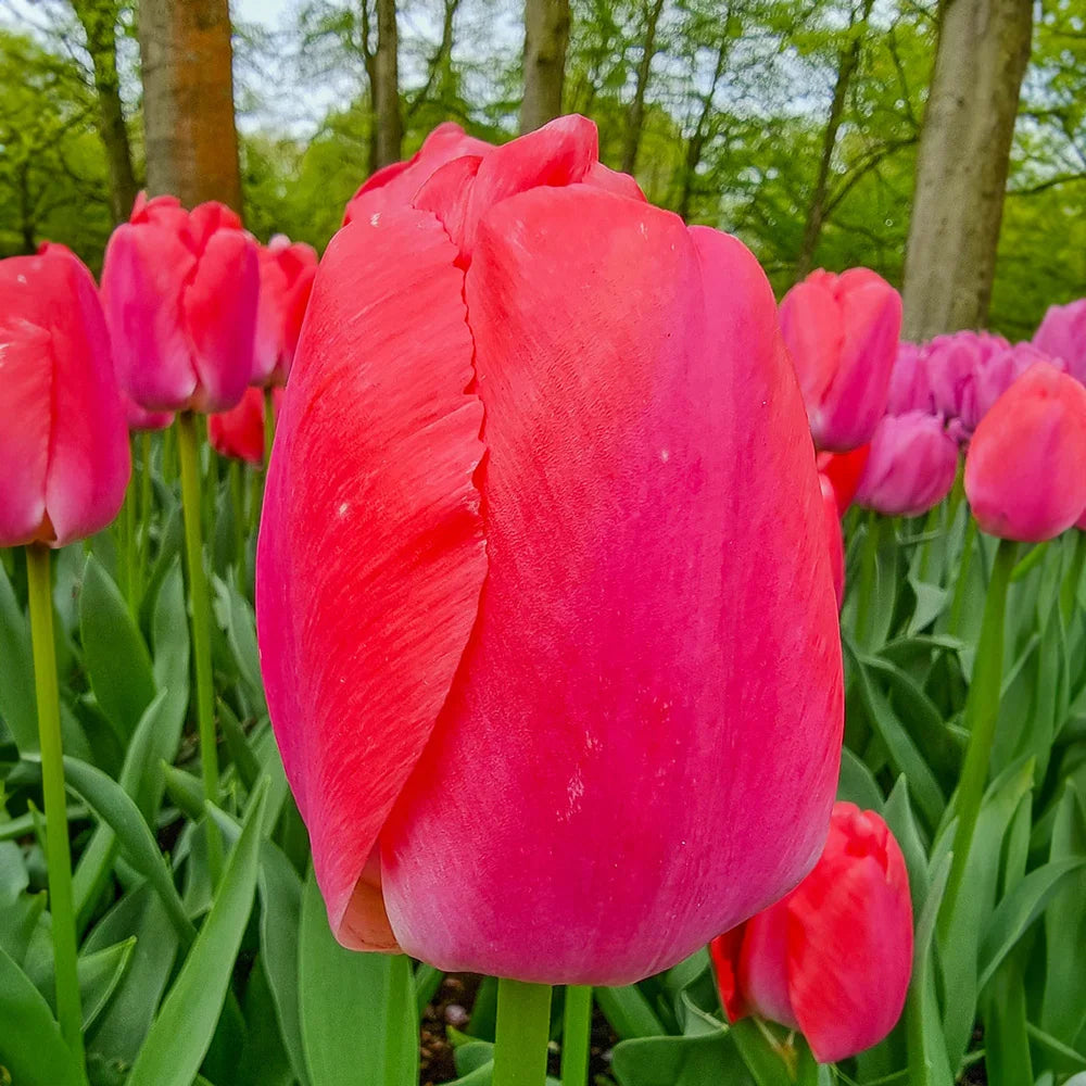 Huge, bell-shaped, 5" pink blooms make a big impact when they burst into bloom in mid to late spring. Pink Pride Tulips are some of the best tulips for landscaping. They have long, sturdy, 22" stems that hold up well in the garden and cut-flower displays. They perennialize well, so you can enjoy them year after year. Sports of Darwin Hybrid Tulip Ollioules, they grow and perennialize best when planted in well-drained soil and in full sun to part shade.