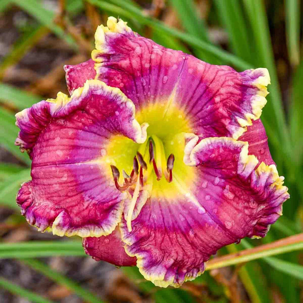A generous planting of these ruffled, elegant daylilies is everything your clients and customers could want. Lush, reddish-purple blooms feature a distinct violet halo as well as a unique double-hued rim of pale yellow and violet. Rude Awakening displays an abundance of 4-4½" wide, recurved flowers atop strong, 30" stems in midsummer, with a second flush of blooms appearing with reliability in late summer to early fall. A fantastic offering for daylily lovers and landscapers.