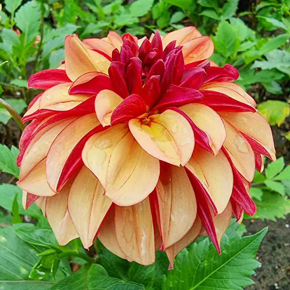 Introducing Crème de Cognac—a new addition to our Dahlia line, but sure to become a favorite. Beautiful, 4" double blooms are made up of layered petals the color of warm brandied cream that display rich cranberry undersides and centers, giving a brilliant two-toned effect in the garden. The strong plants are relatively short at 32" tall, but make a wonderful addition to borders. Makes a lovely cut flower, too.