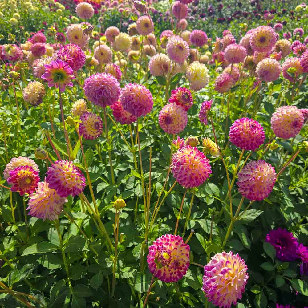 As refreshing as a summer rain, our new Hapet Daydream Dahlia will liven up those humdrum seasonal beds with a cheerful color palette and enchanting flower form. When the midsummer heat is bearing down on borders and garden beds, this wonderful perennial plant is putting out 3-4" ball-shaped blooms by the dozen. Each flower is a bright pink masterpiece on a vivid yellow background—perfect for adding eye-catching color to the landscape. Hapet Daydream's stately 48" height makes it a great choice for back borders or cutting gardens, too. The bicolor blooms create quite an impressive display both indoors and out. Lovely grown in groups of three, five or more!
