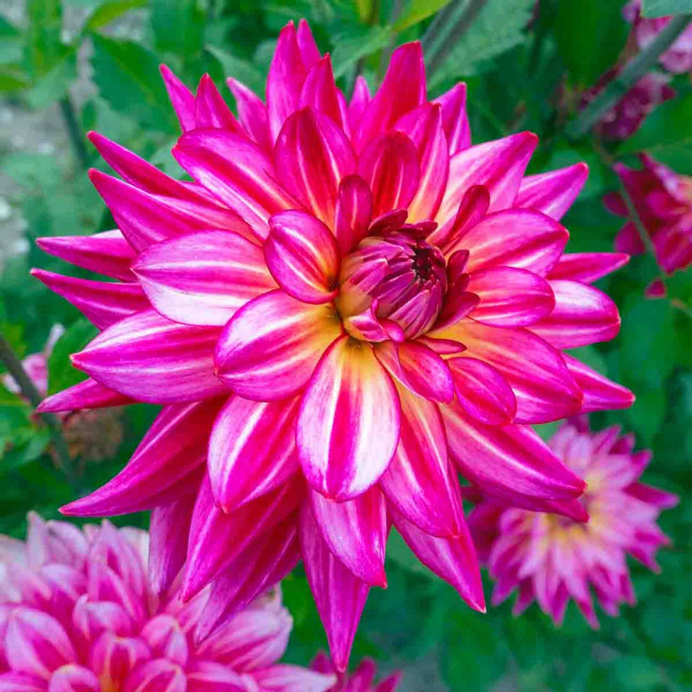 Destined to become a customer favorite with gardeners and landscapers, Pinkie Swear boasts huge, 7" blooms in an eye-catching coloration and unique semi-cactus flower form. Each unusual dahlia features an irregular pattern of pink, white and magenta—superb as a cut flower! Like summer in a vase, it brings a touch of the season indoors to enjoy, while it brightens up borders and mixed beds outdoors. At an impressive 47" tall, the vigorous plant makes an outstanding addition to any landscape. Productive and easy to grow.