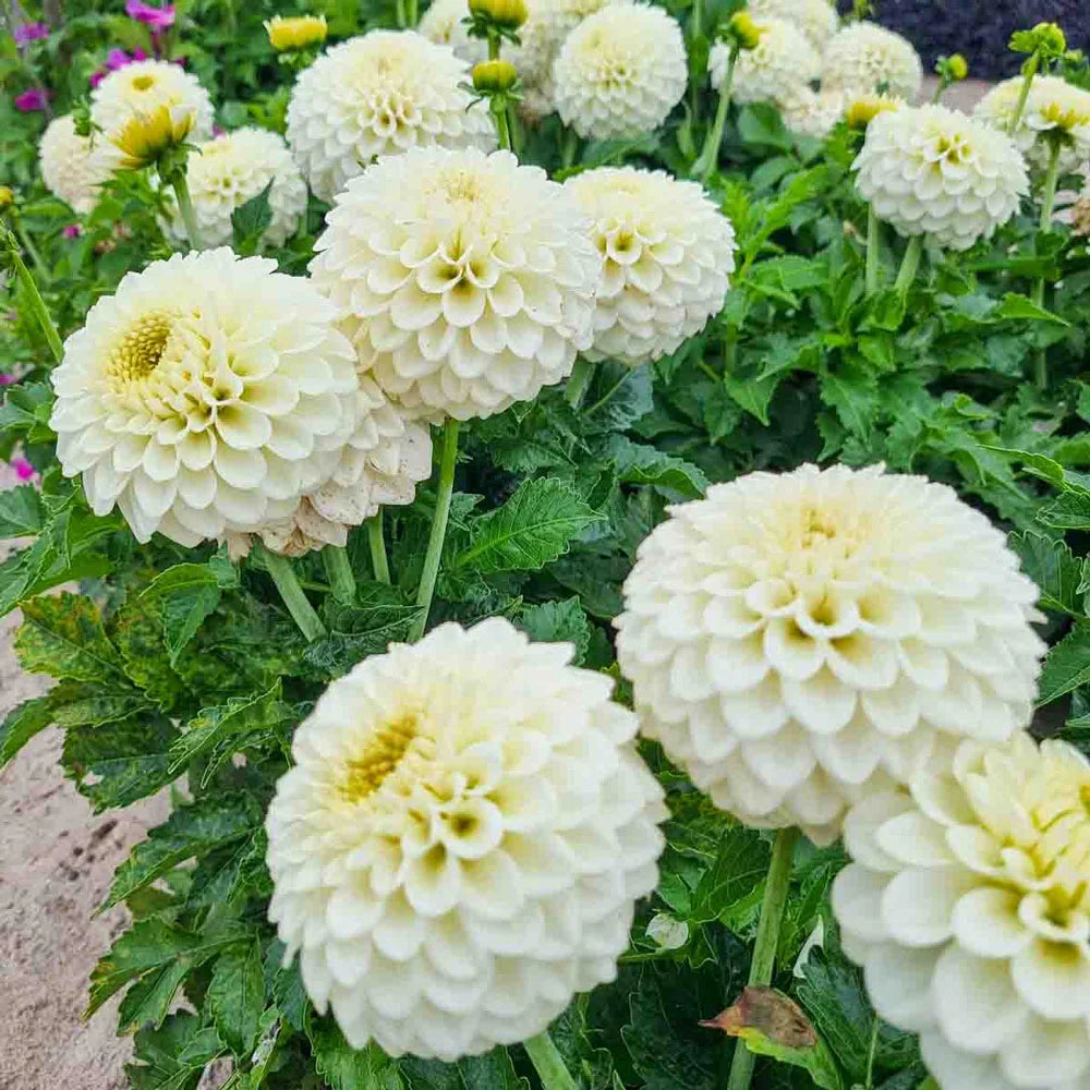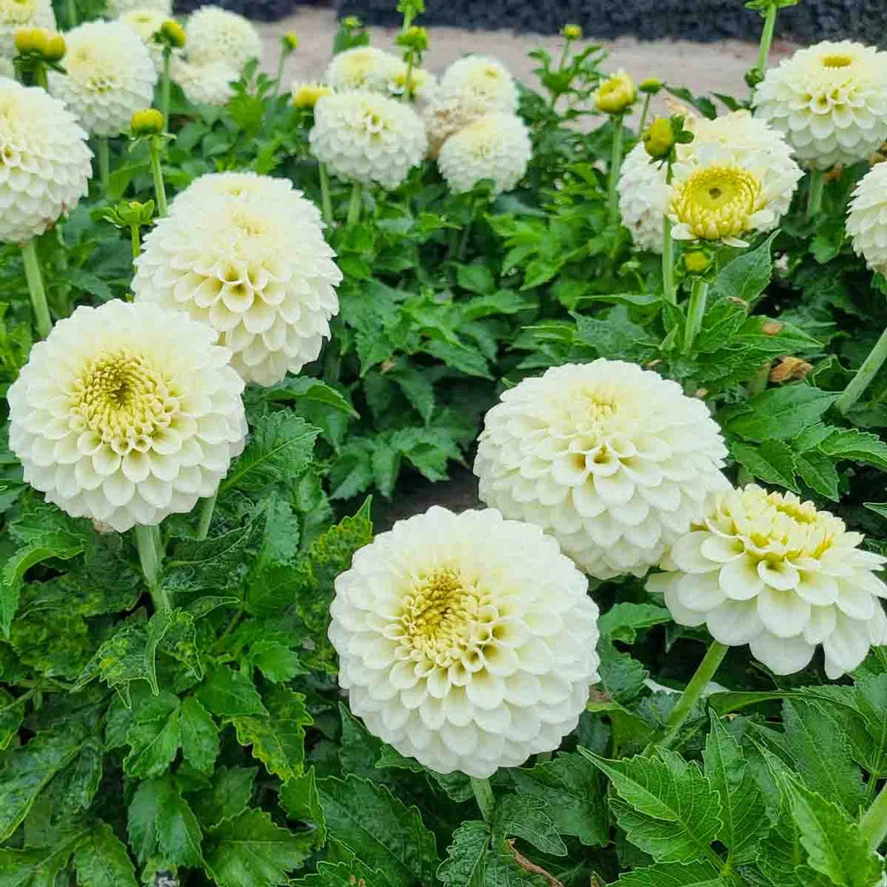 A tasty treat for the border, this decorative dahlia produces loads of round, creamy white blooms with soft yellow accents—just like freshly popped corn. Standing 36-40" tall, Popcorn gives a light, playful look to mid or back border displays. Pick a bunch to add a touch of whimsy to indoor bouquets. A generous bloomer, it delivers an abundance of flowers with good substance, lasting a long time in the garden and vase.