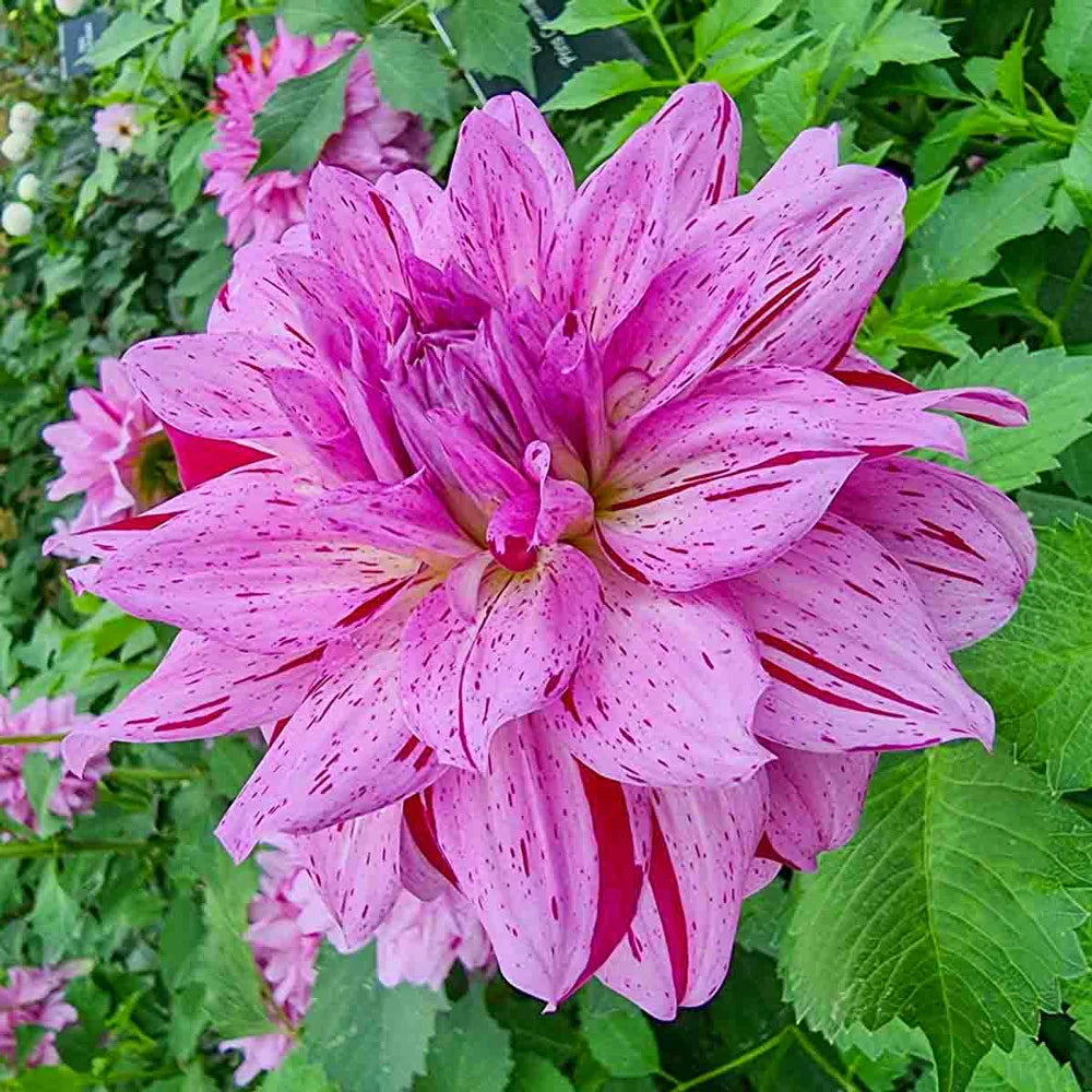 Playful, pink blooms that are fully double and sport a unique pattern create quite a stir in borders and beds. Prince Carnival is a festive decorative-type dahlia that displays 6" flowers of vivid pink to lilac petals speckled and streaked in striking purple-red. The effect is anything but subtle. The unique blooms cover a strong 32" tall plant from midsummer to frost. Gardeners and growers alike will adore these eye-catching dahlias in fresh-cut arrangements or in an outdoor setting. No two flowers are alike!