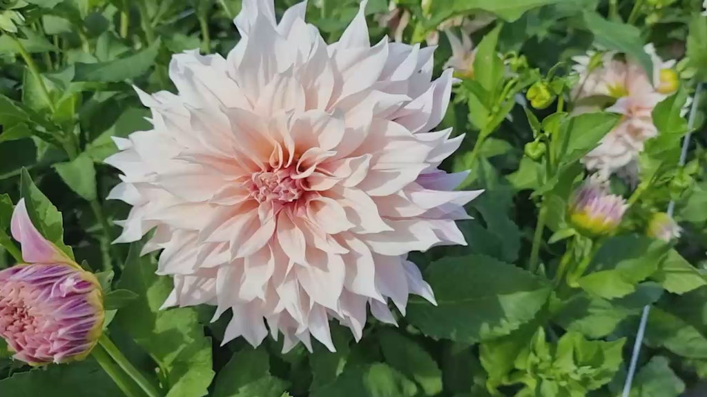 Café au Lait Dahlia offers a very unusual coloring of creamy flowers tinged with peachy, light pink—a subtle blend that appears to be different each day. Spectacular 10" flowers are excellent for sunny borders and leading florists in Europe have discovered this variety for bridal bouquets and other high-end floral arrangements. Remove spent flower heads to encourage more blooms and maintain a neat appearance. Dahlias are easy to grow, but not hardy. Take care to lift tubers in zones 3-8 in the fall and store in a dry, frost-free location. Deer tend to avoid.