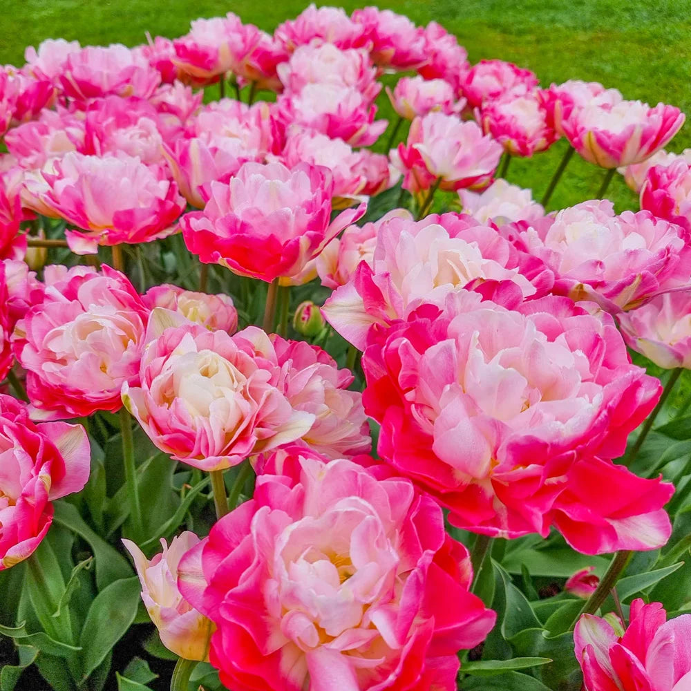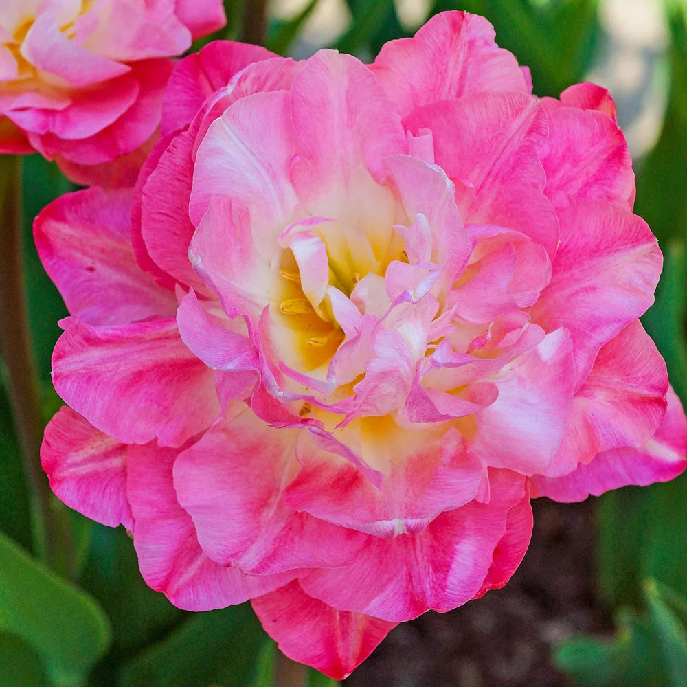 One of the prettiest doubles we've seen! Double Peony Tulip Double Sugar's fluffy, 5½" blooms have layers of petals in an array of pink shades from light to bright. Its loads of petals make the blooms look like peony flowers. Growing 14-18" tall with sturdy stems, Double Sugar adds plenty of sweetness and charm to cut-flower arrangements. Due to their size, they perform best when protected from severe wind and rain. For best results, plant tulip bulbs in well-drained soil in full sun to partial shade.