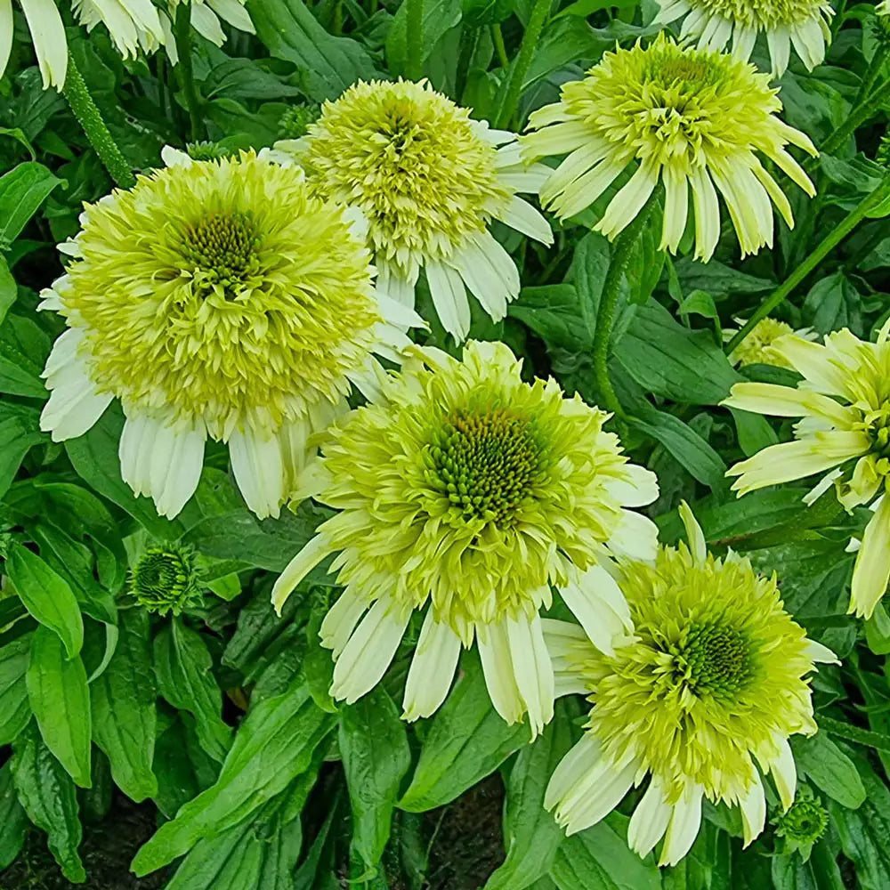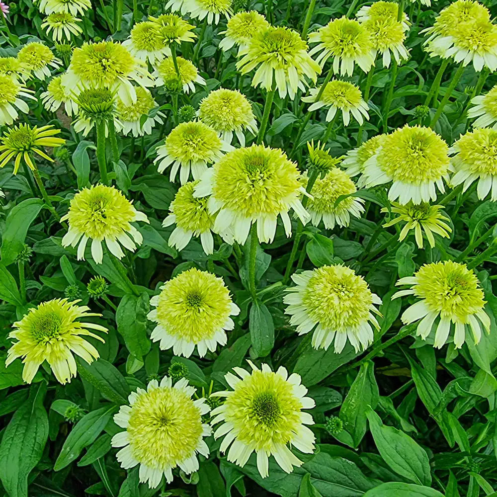 Take one look at this delightful coneflower and you'll be hooked. This crisp, light coneflower features pale green petals surrounding a fully double cone in a rich lime-green shade. Sun-splashed borders become a butterfly buffet with this honeydew-hued variety in its midst. Plus, it creates the most sumptuous bouquets and arrangements, filled with bright, one-of-a-kind color and that tried and true echinacea form. Honeydew grows 18-24" tall and features a well-branched habit with multiple blooms per stem. Perennializes well, reliably returning year after year with increased bloom and vigor. Easy to grow and drought tolerant. Butterflies and pollinators love it. PP24630