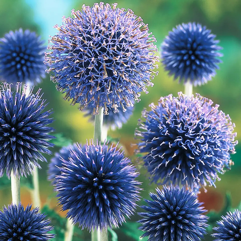 Gardeners and landscape pros that must contend with salty soil and drought conditions, this new offering is perfect for you! Introducing echinops ritro, an award-winning perennial that is as charming as it is carefree. Also known as Southern Globe Thistle, this unique plant is perfect for adding late-season color to borders, beds and even bouquets. Featuring small, metallic blue blooms that have a unique round flower form, echinops ritro is unlike anything most gardeners have ever seen. Its spiky, silver foliage adds an unusual twist to the overall look, especially when paired with more "traditional" summer perennials. These tough plants easily tolerate drought, high heat and salt. Pollinators love them!
