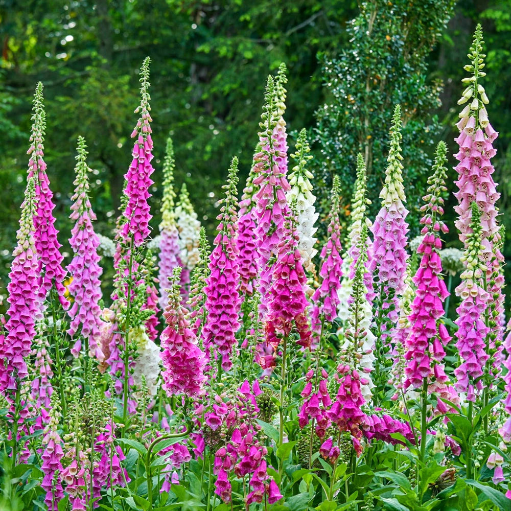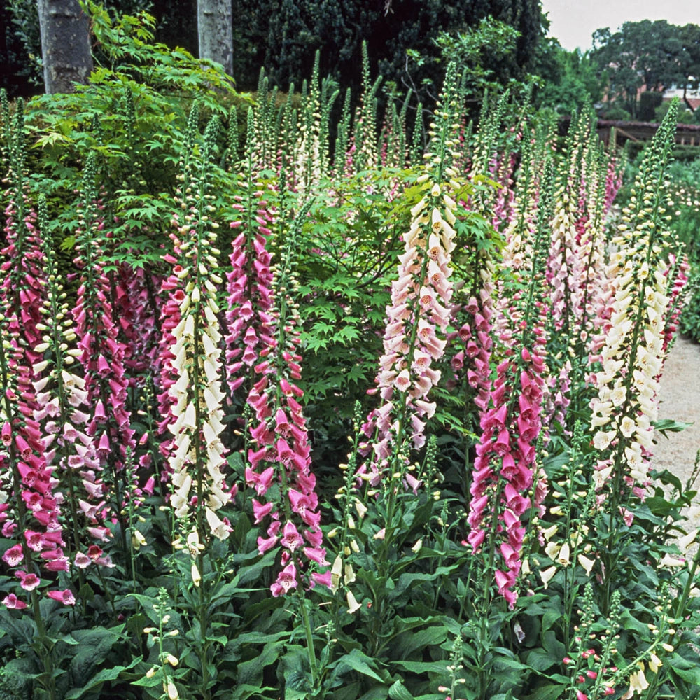 Stately and colorful, this new mix of showstopping foxglove produces colors from pink to purple to white—a favorite palette of gardeners and hummingbirds alike. An excellent way to create drama in back borders and along foundations, a planting of these tall perennials adds color, interest and texture—even in fully shaded sites. Plants are self sowing and naturalize well. Low maintenance. Size: #1 Root.