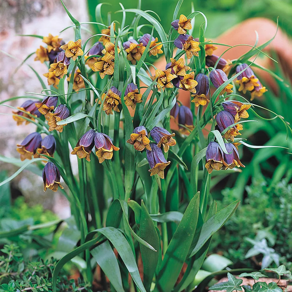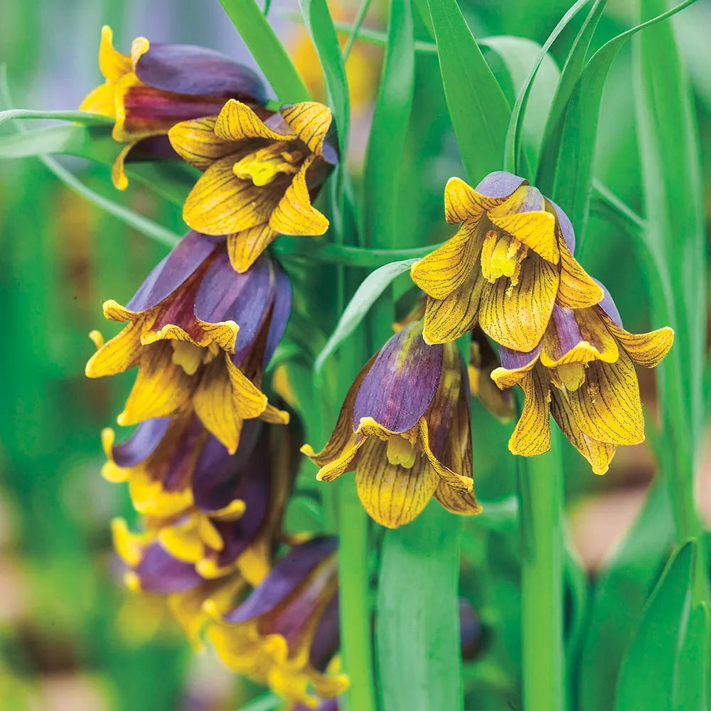 Charming bell-shaped blooms in a unique coloration of dark mahogany with golden interiors are just the thing to attract attention from passing pollinators, as well as passersby. Fritillaria uva-vulpis is an award-winning variety with tons of exotic flair and great garden performance. Deer and wildlife resistant, it creates a beautifully unique display in borders, containers and feature beds. Plant in groups for maximum impact. For best results, site in well-drained soil with plenty of sun.