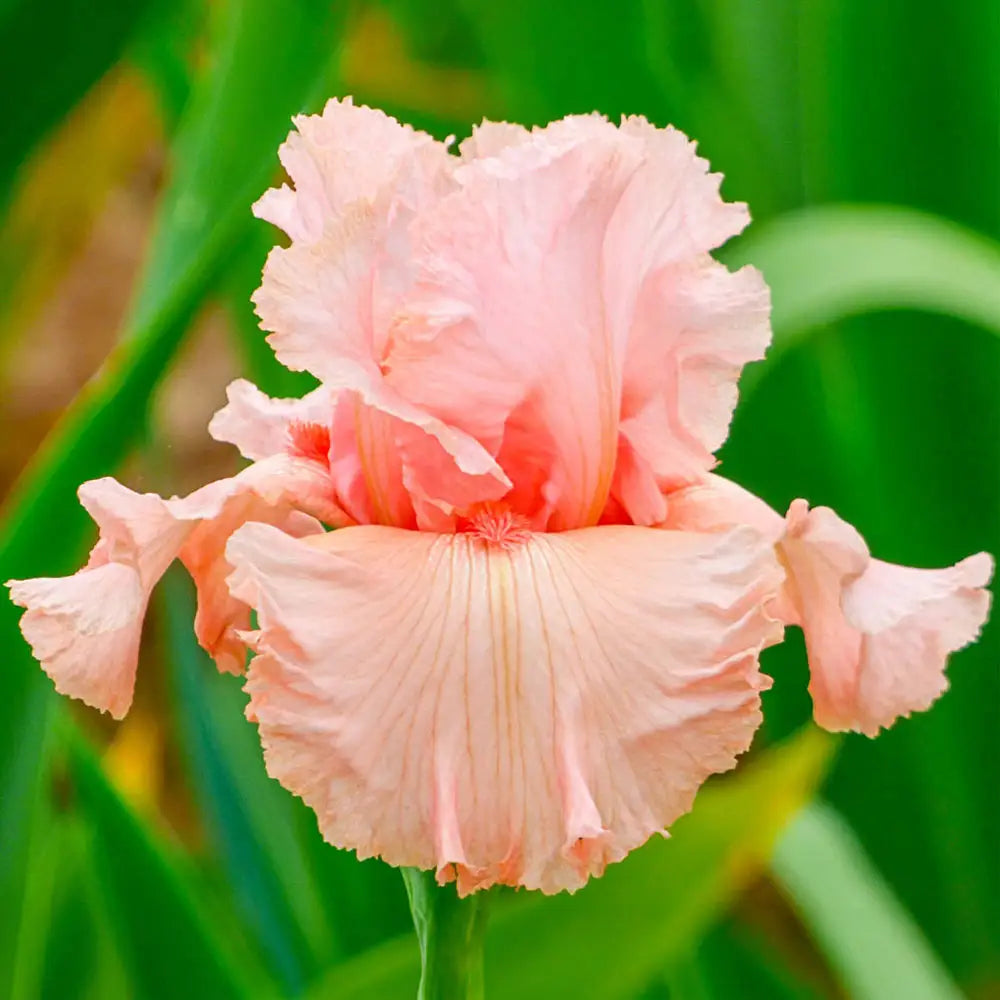 Late-spring landscapes come alive with color and form when Angel's Rest is planted. This beautiful German Iris features broad, pink blooms that feature a yellow median line down each fall petal. Bold orange beards add more color and contrast. For a dynamic garden display in a feature bed or mixed garden, we suggest pairing Angel's Rest with solid yellow varieties. The overall scene is at once serene and colorful.