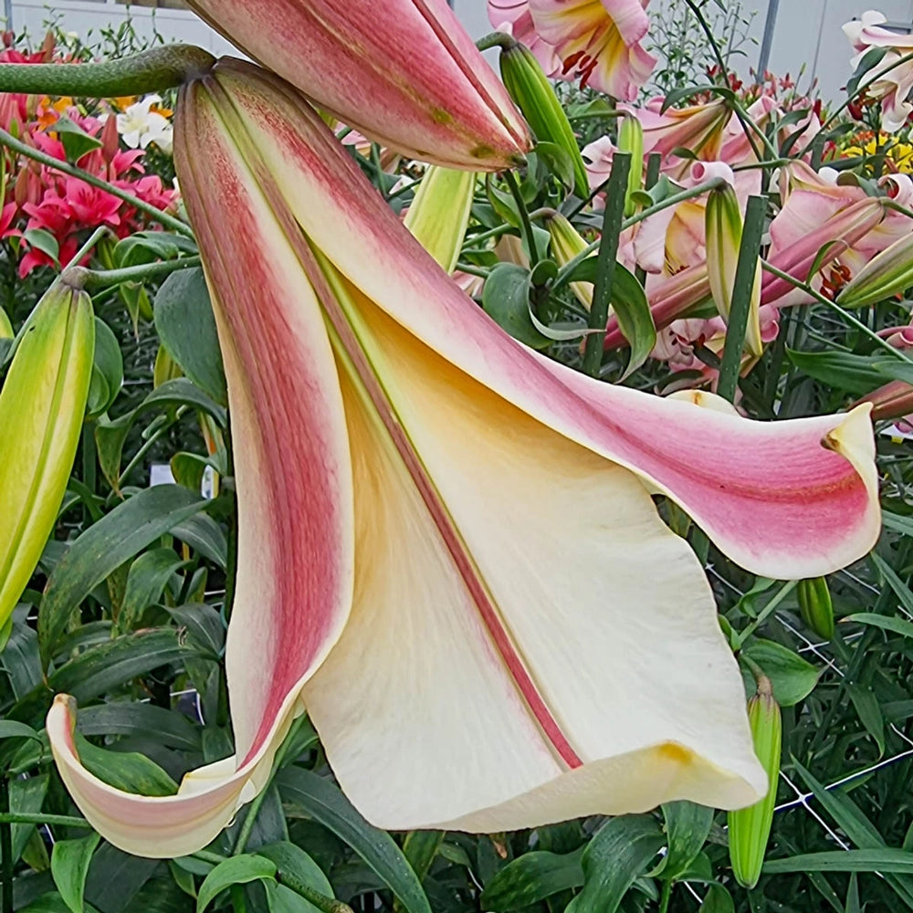 A luxuriant cross between Trumpet and Oriental lilies, this giant hybrid variety exhibits all the best qualities of both! Miss Peculiar is an exotic beauty that displays massive 11" blooms of icy white, each showing off a large orange-yellow center and elegant reflexed petals. Growing to an impressive height of up to 8' by its third year, it makes its mark in foundation plantings, along sunny fence lines or as a striking focal point in the landscape. Like others of its kind, Miss Peculiar produces multiple stems from a single bulb, which contributes to its stellar height. Pollinators are drawn to the fragrant, open blooms.