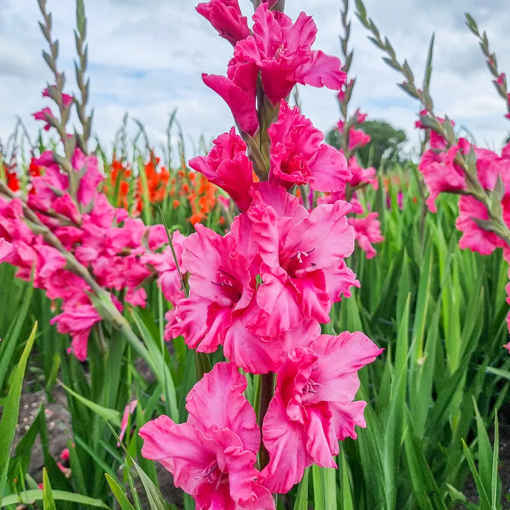 With warm pink tones and big, 4" blooms that climb up robust, 4' stems over a long flowering period, Kingston Ruffle is sure to gain new admirers every day. This eye-catching gladiolus makes a wonderful addition to nearly any sunny garden spot, but it really shines in cut-flower arrangements for indoor enjoyment. Outdoors, it dazzles in back borders, butterfly gardens and foundation beds that get plenty of sun. A true bee magnet!