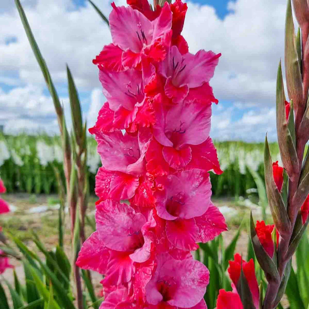 Gorgeous, 4" two-tone pink blooms march up the side of sturdy, stately 48-55" stalks from mid to late summer, bringing butterflies and bees to the landscape. If this sounds like the perfect pollinator magnet for summer plantings, you’d be exactly right! Titanic Gladiolus is a fast-growing beauty that displays romantic pink blooms that feature soft pink petals up front, while a second layer of hot pink petals unfurls to the back. The effect is boldly elegant in back borders, mixed beds and cutting gardens.