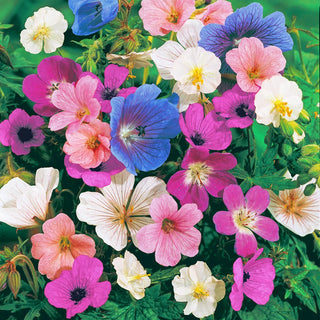 Add cheerful color to containers and perennial borders. Hardy Geranium Mixed is a random assortment of pinks, violets, blues and whites. Growing 24" tall with mounds of dark green leaves topped with colorful blooms, geraniums are an unequaled addition to the perennial border. They continue to gain popularity among gardeners who are looking for low-maintenance plants. Hardy Geranium Mixed blooms in late spring to early summer. Performs best when planted in full sun to partial shade. Deer tend to pass it by.