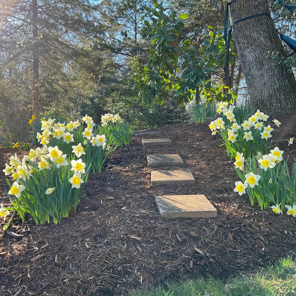Stunning variety brightens borders, rock gardens, containers and cut-flower displays in mid spring. The large, 4" flowers feature white perianths and cream-colored cups. Large Cupped Daffodil Ice Follies is impressive when planted in large groups or with other colored flowers. Growing 16" tall, Ice Follies also is excellent for naturalizing and reliably comes back year after year. Daffodils and Narcissus are some of the most popular of the spring-blooming bulbs. Easy care and deer resistant, they grow best in well-drained soil and full sun to partial shade.