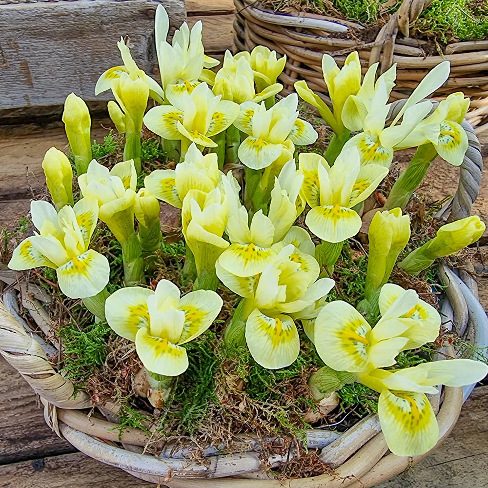 An amazing early dwarf iris to add sunny color and a touch of flair to late-winter landscapes, Katharines Gold features petite 2" blooms of pale lemon yellow accented with white. The low-growing plants are ideal for naturalizing in a rock garden, front borders or patio pots. A reliable bloomer that attracts early pollinators to the area.
