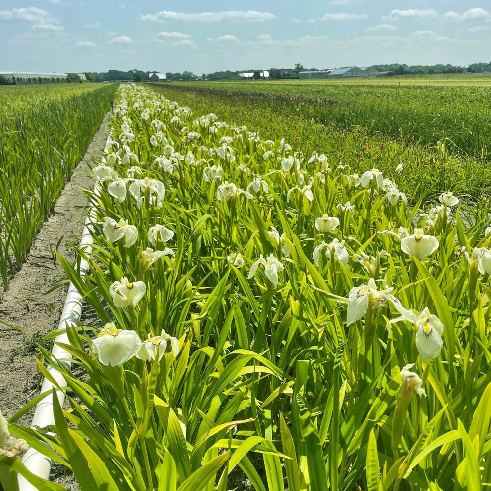 A unique hybrid of Iris pseudocorus and Iris ensata, Cat’s Eye shows off 4-4.5" white blooms accented with distinctive yellow markings that are outlined in rich purple. This is a beautiful perennial iris that attracts butterflies and pollinators, as well as admiring glances. Planted in groups along a sunny borders or in a waterside space, it creates a striking display of light and form. Stunning in fresh-cut arrangements, too. Size: #1 Root.