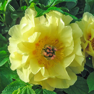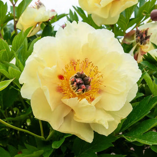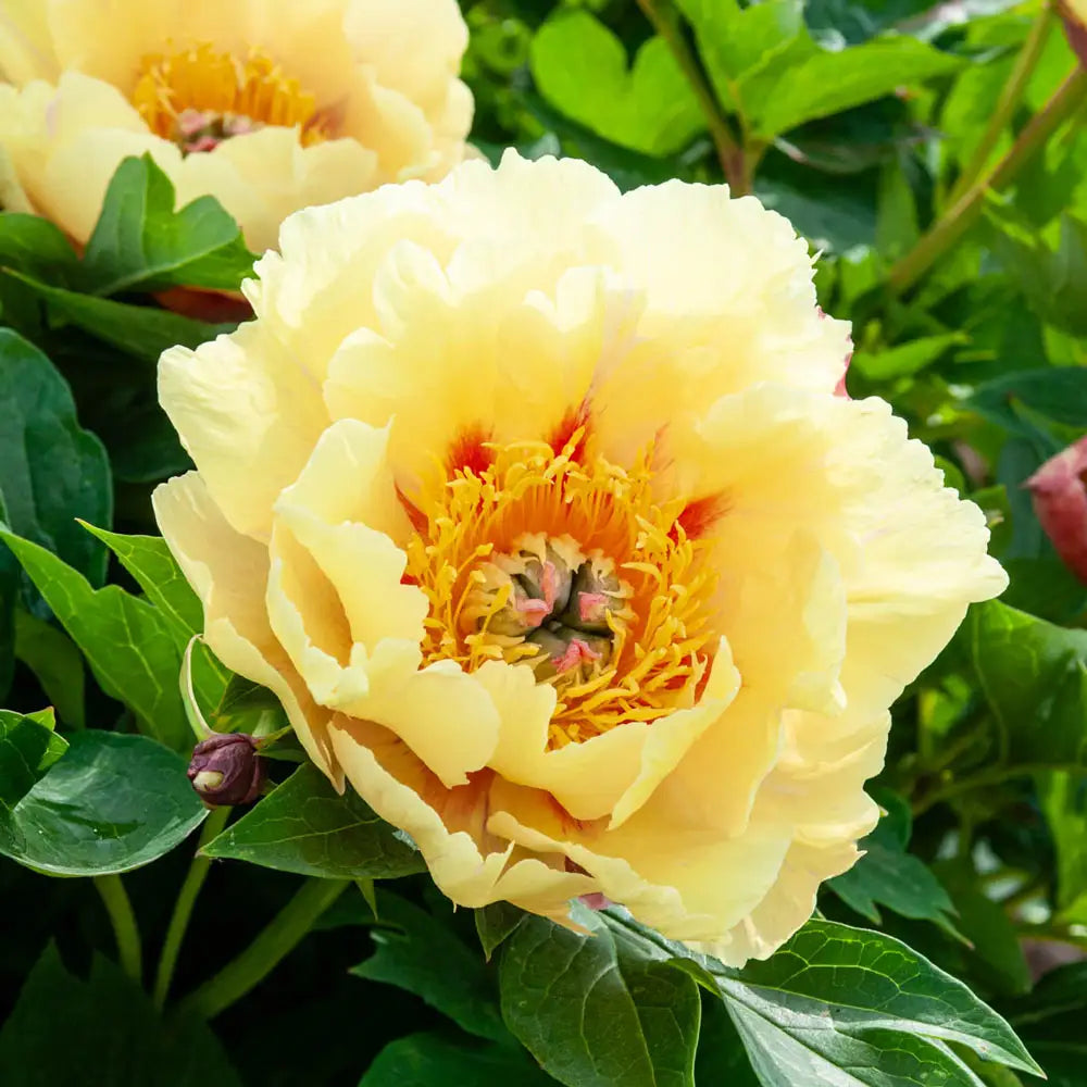 Cherishable double flowers are large, golden yellow with soft red centers. Stems are stronger than herbaceous peonies and each stem produces several buds, guaranteeing a season of blooms.