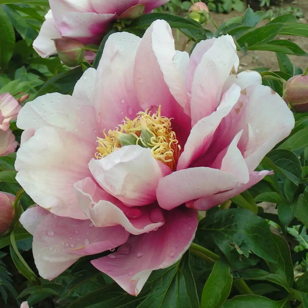 Design a garden that won't soon be forgotten by adding this fantastic peony to the mix. Itoh Peony Kopper Kettle features semi-double to double, 6-7" flowers in a blend of red, yellow and orange that mature to creamy white with bronze centers. Often, all colors are present at the same time, offering a beautiful display of hues that simply melt together in a warm palette. Plant in butterfly gardens, borders or as a focal point planting in a decorative pot or bed.