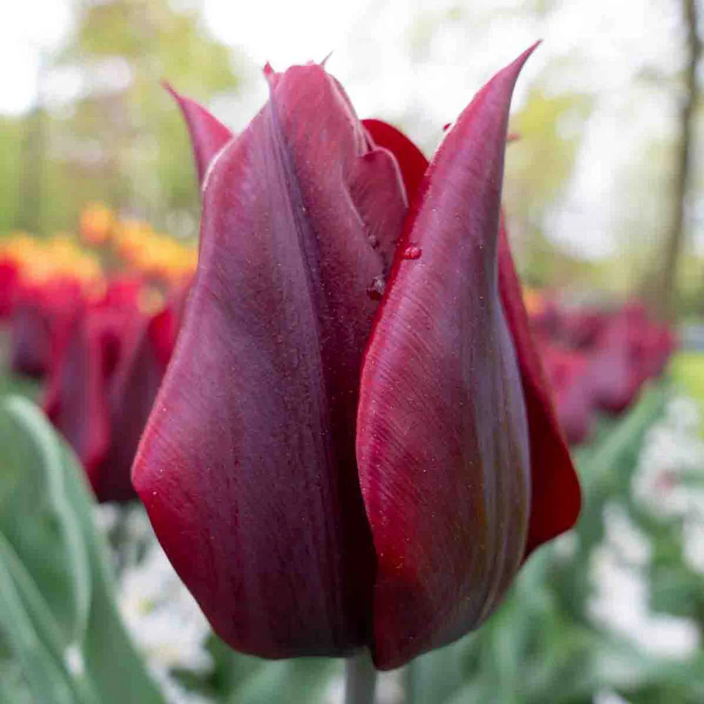 Extend the tulip season with this elegant beauty. Late-Flowering Tulip Lasting Love's deep burgundy petals are edged with softer red tones. The slightly recurved edges give it a very sophisticated look. Blooming in late spring atop 22" sturdy stems, it's a beautiful cut-flower, too. Tulips are some of the most popular flower bulbs to grow and a must-have for the garden. Lasting Love is a perennial tulip that returns year after year. For the maximum impact, plant tulips in groups. Tulip bulbs perform best when planted in well-drained soil and in full sun to partial shade.