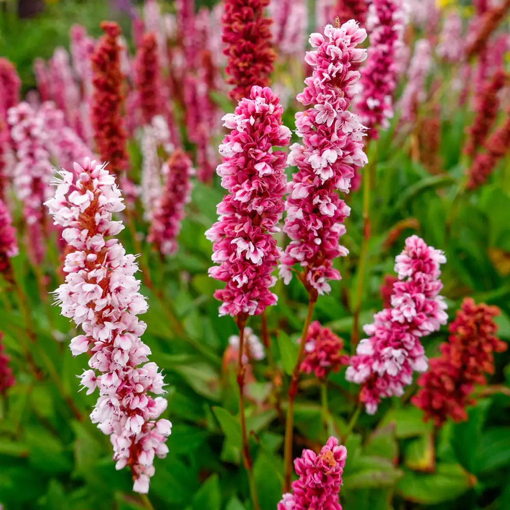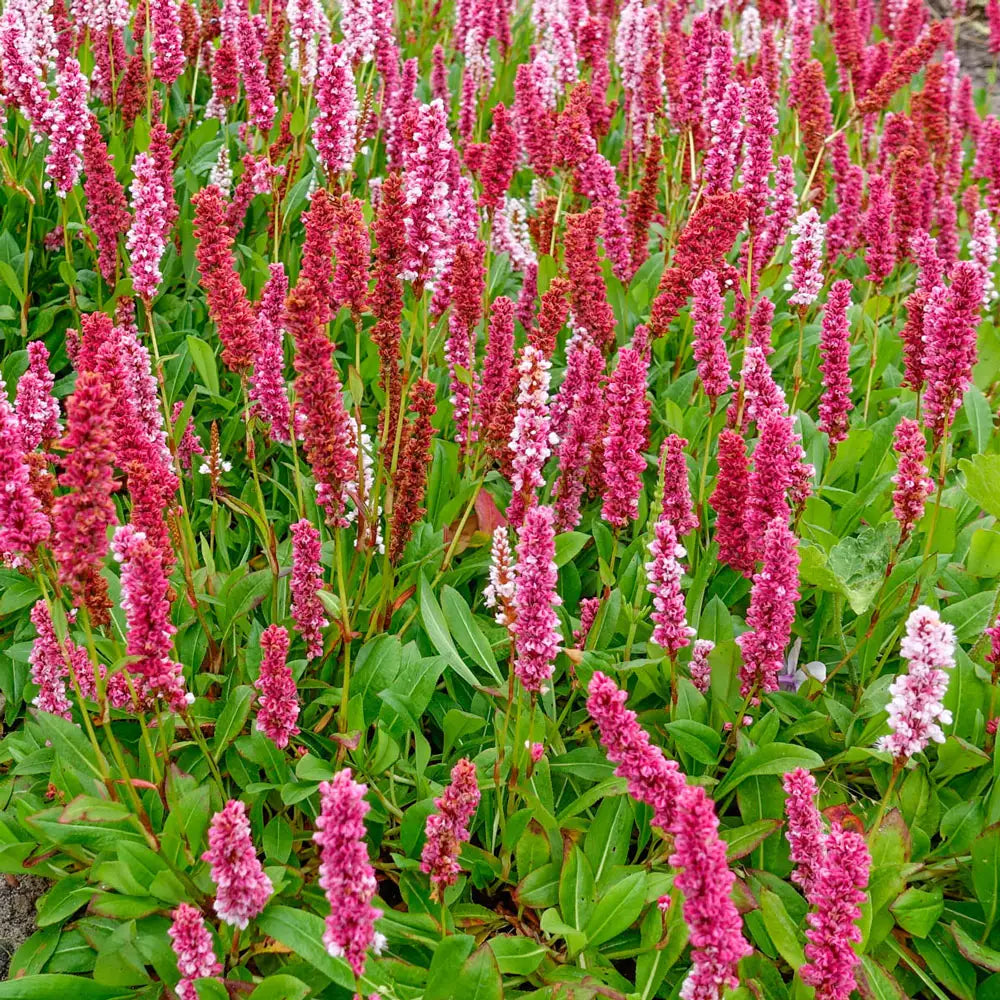 Defying its unfortunate name, this Lesser Knotweed proves itself as an award-winning perennial that's perfect for adding color and interest to lightly shaded or sunny site. Gnome creates quite a scene as a dense carpet of green, 4-6" tall foliage and 8-10" tall, pink with white, bottle-brush blooms that age to red in summer. A wonderful perennializer, it also resists slugs and deer with ease. A fantastic ground cover or front border plant that butterflies and pollinators love!