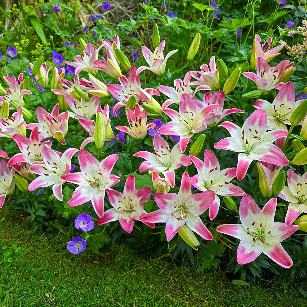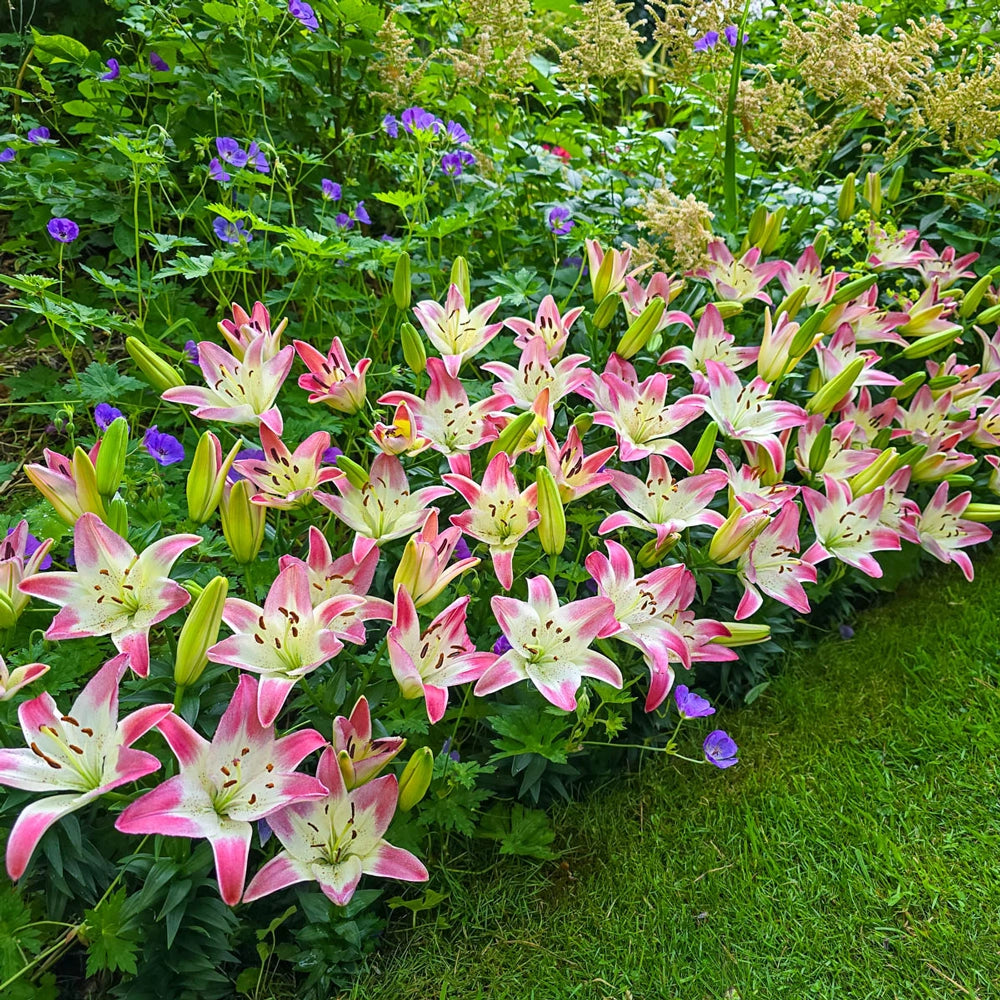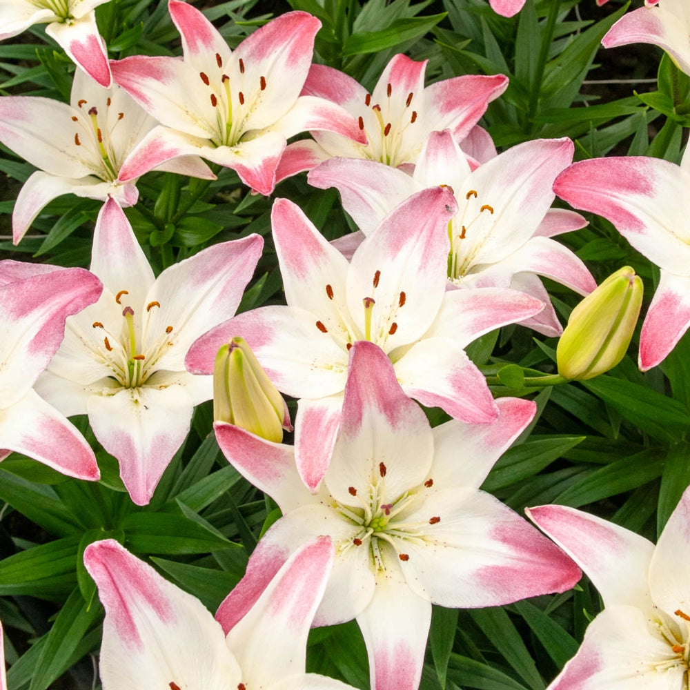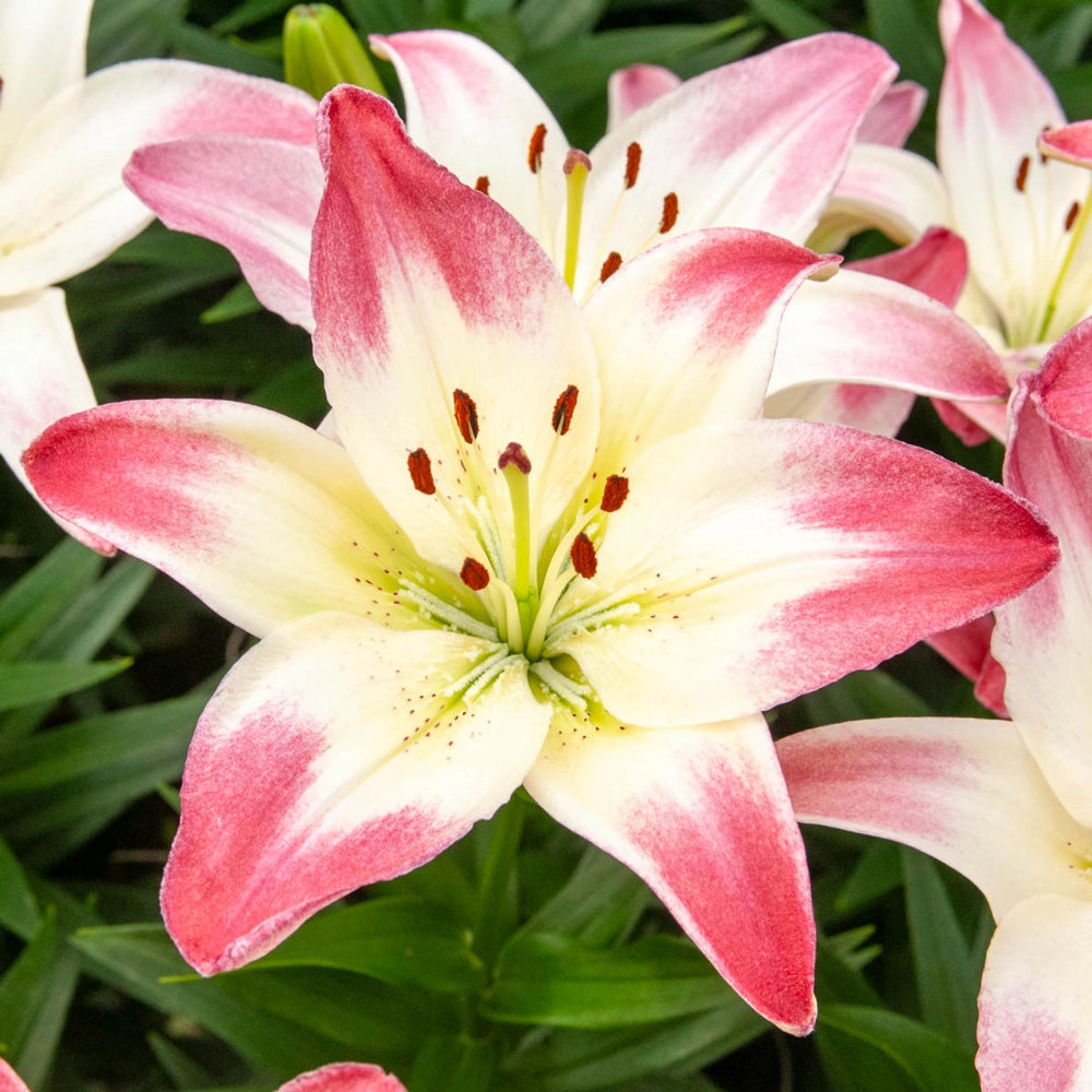 Delivering a pop of vibrant color wherever it is grown, this vigorous dwarf lily boasts glorious two-toned blooms that perform equally well in containers or along sunny borders. Relatively short for an Asiatic type, it produces smooth white, 5" up-facing lilies tipped in raspberry red. Tops for cutting, they make outstanding bouquets. Also a number-one choice for butterfly and pollinator gardens. For maximum outdoor appeal, we suggest planting Lollypop alongside white or red varieties. Size: 12-14 cm Bulb.