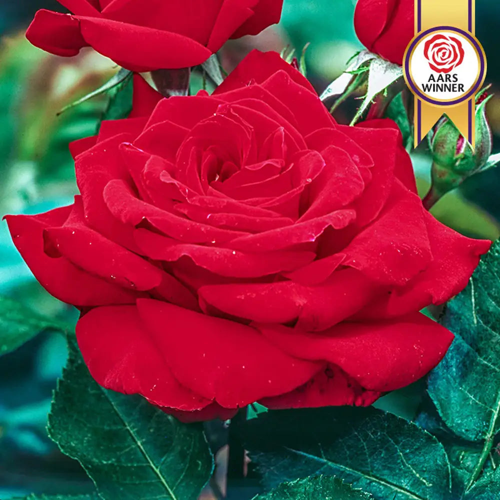 True tea rose form is Mister Lincoln's claim to fame. Big, pointed buds turn into well-formed blooms of velvety red with a powerful, classic damask rose scent that perfumes the surrounding air. Long stems make for perfect cut-flower bouquets and arrangements. An All-America Rose Selections winner, Mister Lincoln has been a favorite of rose growers and gardeners for decades...with more to come. Upright, vigorous plants grow 3-5' tall with a similar spread.