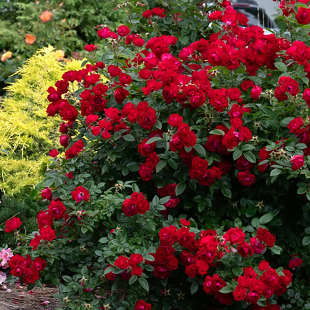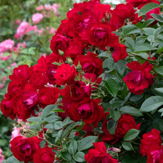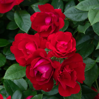 Oh My This is one of the best floribunda types we've seen in some time. It features big clusters of rich, velvety red blooms with a sweet apple scent and deep green, glossy foliage touched with red. Roses appear from late spring to frost, providing plenty of flowers to enjoy both indoors and out. Well-rounded plants reach 4-5' tall and make a great hedge when planted in groups. Just as nice as a standalone planting. Exhibits good disease resistance, too. Water early in the day to avoid wet conditions at night that could cause fungus or diseases. PP24728