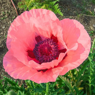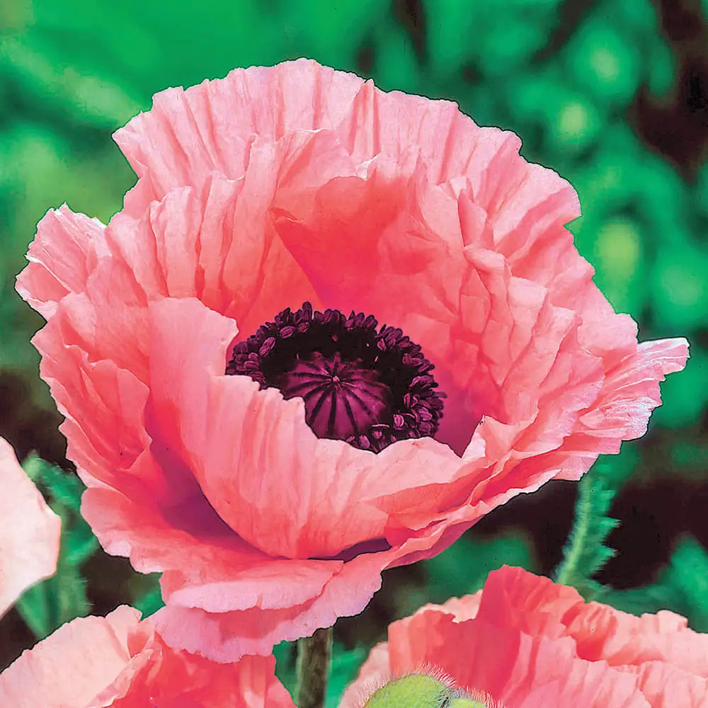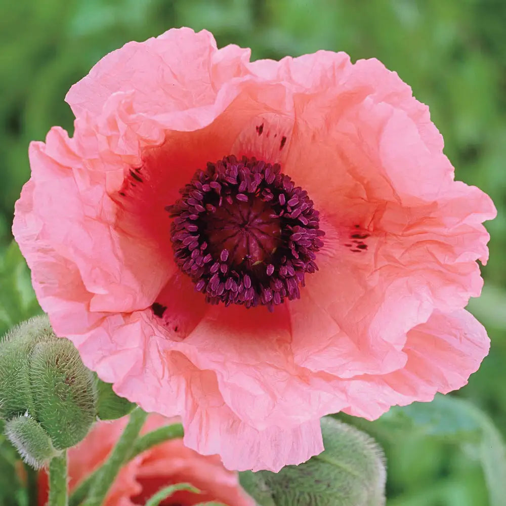 Single blooms of pure salmon-pink emit a light iridescent sheen that is simply mesmerizing, and blush-pink blotches at the center. Large poppies boast layers of crinkly petals that closely resemble crepe paper, and top stiff stems that keep them upright and visible to passing hummingbirds. Plant plenty of this gorgeous poppy in cutting gardens, naturalized sites or borders. Helen Elizabeth makes a wonderful companion planting to irises of all hues.