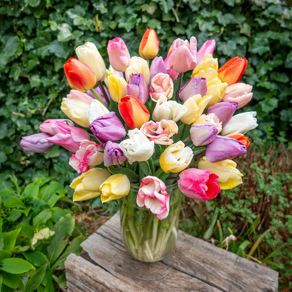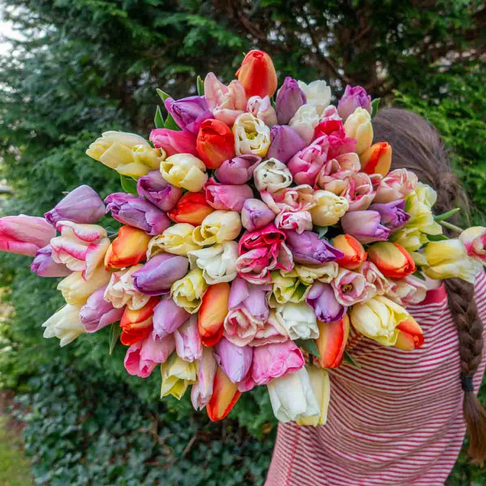 Mix of pastel colors adds charm and beauty to landscapes, flowerbeds and cut-flower arrangements in late spring. Pastel Mayflowering Tulip Mix is a random mix that may include pink, purple, soft yellow and other pastel hues. Growing 26-28" tall, they make a big impact when planted in large groups. Planting early, mid and late-season tulip varieties is a great way to extend the tulip season. For the best garden performance, plant tulip bulbs in well-drained soil and in full sun to partial shade.