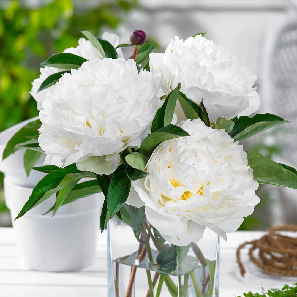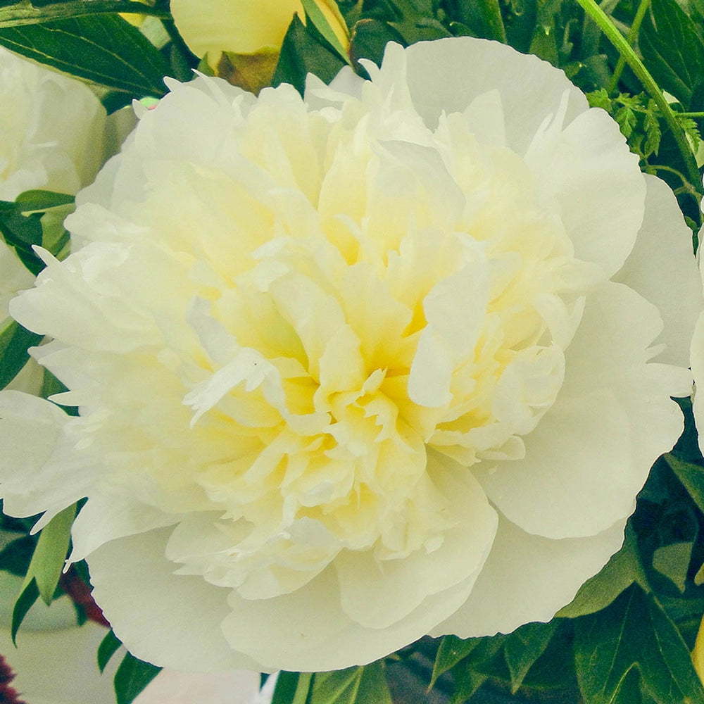 We love this historic peony variety, and your gardening customers will, too! Marie Lemoine gains a real following thanks to excellent lemon-yellow, 6 ½" blooms that mature to pure white. First introduced in 1869, the fragrant, double blooms have maintained their best qualities over the years. Still highly regarded as one of the most beautiful peony plants on the market, its compact 24-26" height makes it a natural addition to borders and mixed cutting beds.