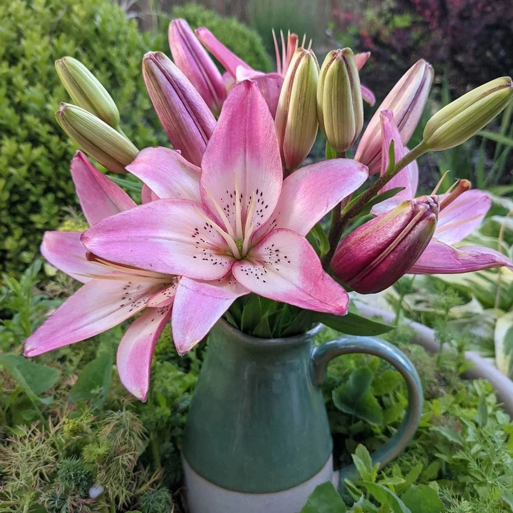 Soft and sweet, the color of this pink Asiatic lily is nothing short of pure romance. Rosella's Dream features true, dusty pink blooms with snowy white accents toward the center. Combine the delicate hue with a lovely shape and you have a lily that is the perfect choice for fresh cut-flower bouquets and arrangements. But Rosella's Dream is just as desirable outdoors, too. Planted in groups along back borders, it flowers beautifully and draws the eye over the entire display. An excellent choice for a butterfly garden, attracting the beneficial insects with ease.