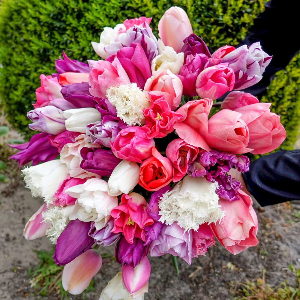 When it comes to garden design, our Pinot Grigio should definitely be on the menu. Clean lines and fringed edges meet in this elegant blend of pink, purple and white tulips, adding a touch of chic romance to outdoor spaces. Our design pros hand selected this mix for its sophisticated colors and lush tones. Various tulip types in a range of shades and forms create this mixture, developed especially for use in cutting gardens, though it performs well in borders, too.