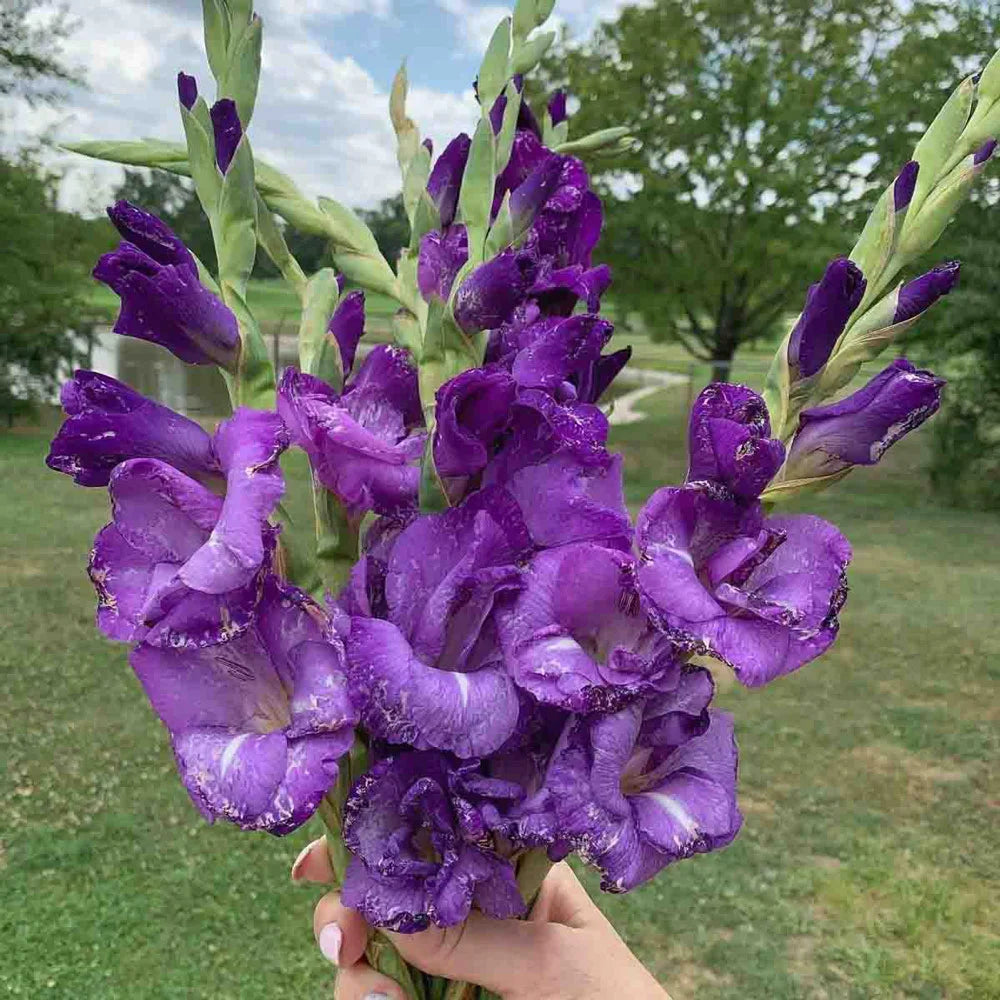 Blue Isle Gladiolus boasts Dark blue-purple flowers. It is an excellent variety for commercial cut-flower growers. Beautiful and long-lasting color for floral arrangements, this glad is also ideal for the back of a sunny border where it will rise and shine above lower-growing perennials and annuals.