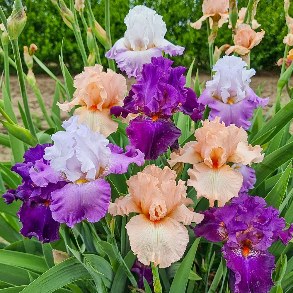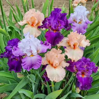This exclusive mix K. van Bourgondien includes an array of magnificent German Iris in gorgeous shades of purple and pink. The two coordinated colors come together to create a picture-perfect scene in the garden, whether in borders or cutting beds, or as a focal point planting. These German Iris are very easy to grow in well-drained soil, and some will even rebloom in late summer to early fall. A fantastic way to kick off the iris growing season.