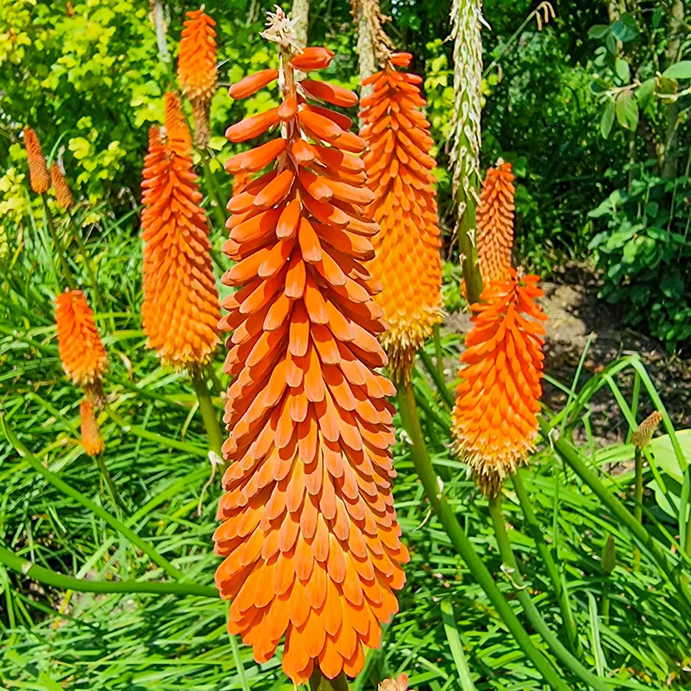 An eye-catching flower form and brilliant orange color make Alcazar a must-have in any pollinator garden or cutting bed. The open florets of this new Red Hot Poker variety are attractive to hummingbirds, butterflies, and more! Plus, the floriferous nature has earned Alcazar the moniker "king of the summer flowers". Plant kniphofia in groups for maximum appeal. They look great at the back of a sunny border or as a breathtaking focal point. The plants are hardy, easy to grow and drought tolerant.