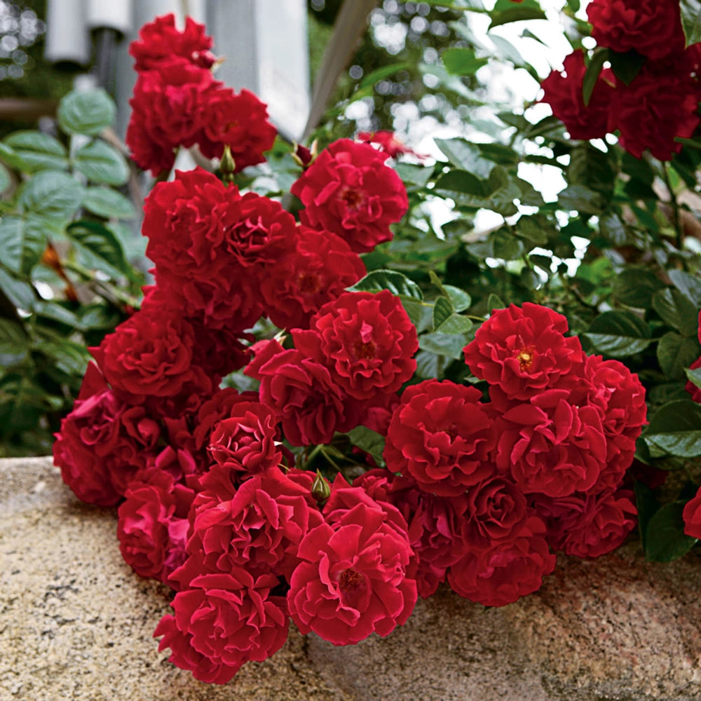 Red Ribbons Ground Cover Rose is an easy-care rose that provides pops of ruby-red color against very dark green, glossy foliage. The 2-in. flowers have a light rose fragrance and bloom in clusters from late spring to early fall. This rose looks impressive spilling over containers or along a garden path. Grows 24-30 in. tall. Exhibits excellent disease resistance. For best results, plant in full sun to partial shade