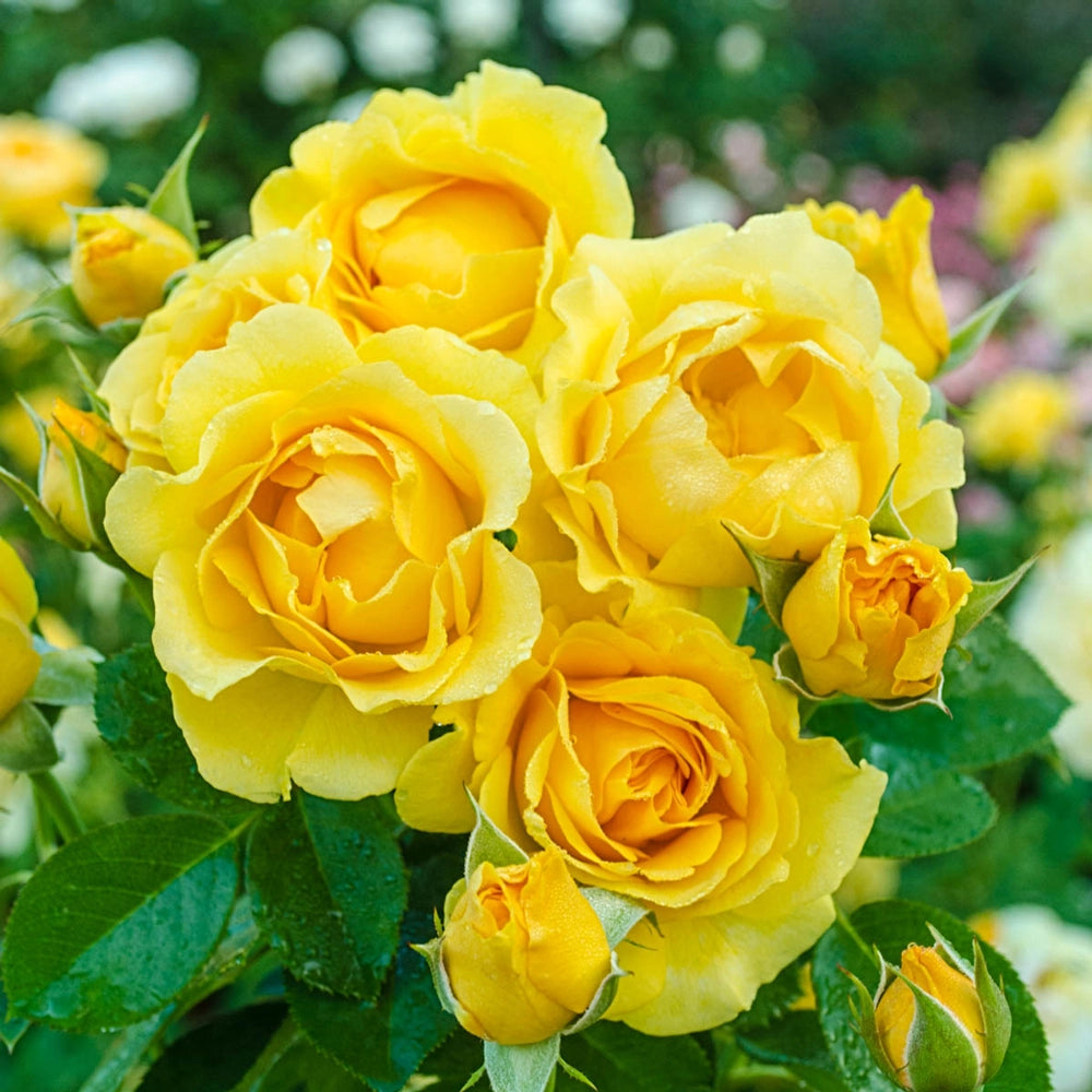 Selected by America's beloved chef Julia Child, the parent rose of this grafted tree rose is a sweet treat indeed. This extraordinary Floribunda type boasts an abundance of classic, butter-yellow blooms with over 35 petals each, giving them a lush, full appearance. As a tree rose, it is superb in a container near an entry or on a patio where its delightful licorice-clove scent can be enjoyed by visitors to the home. Julia Child is an AARS winner, and it's easy to see why. Extra-long bloom season means loads of beautiful blooms.