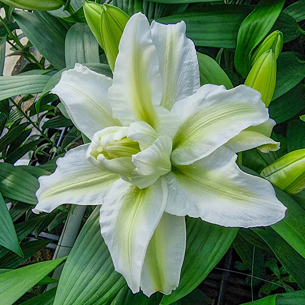 Gardeners and florists alike will be singing the praises of this pollen-free lily! Aisha shows off perfectly shaped double blooms with a highly unique coloration, but absolutely no pollen. Pure white, fragrant flowers feature prominent green centers, and grow to an impressive 6" in width. Robust plants fill borders and cutting gardens with plenty of blooms to be enjoyed both indoors and out. Pair with bolder-hued flowers for a designer-inspired floral display.