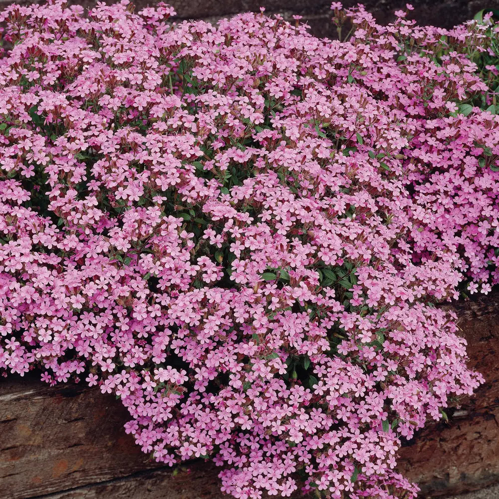 One of the most beautiful and useful hardy perennials. Its tiny, semi-evergreen foliage is almost totally covered with pink, starshaped flowers. Dense, compact with a spreading and trailing habit that is ideal for banks, terraces or low walls.